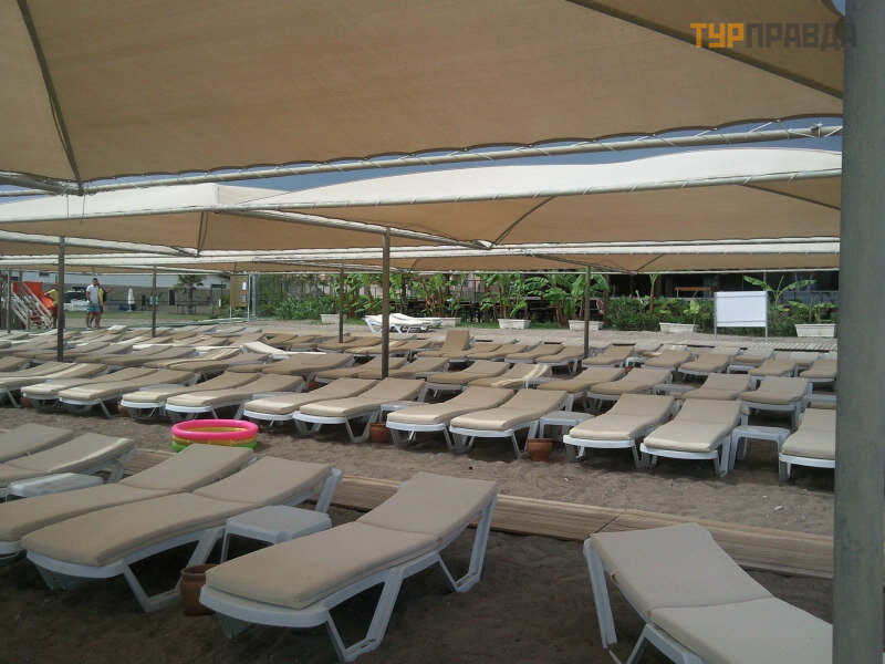 „ Był basen, dwa bary, animacje dla dzieci, scena do animacji, kilka sklepó w i fryzjer. Plaż a był a piaszczysta z leż akami i markizami, urnami na naczynia i popielniczkami. Zaję cia w wodzie był y oferowane wszystkim hotelom jednocześ nie, ale tego dnia nie dział ał y - pogoda był a zł a, a morze chł odne.
