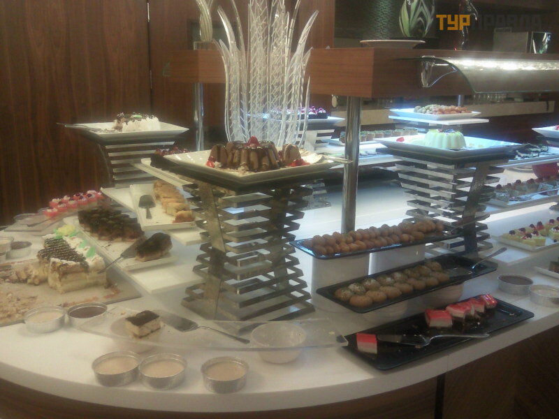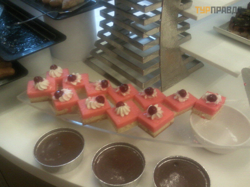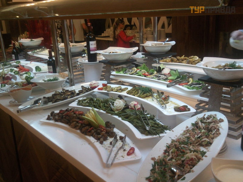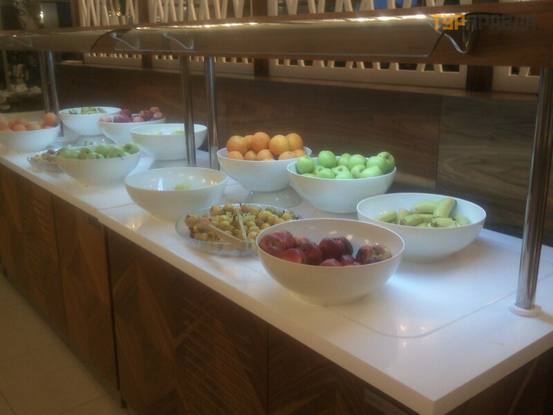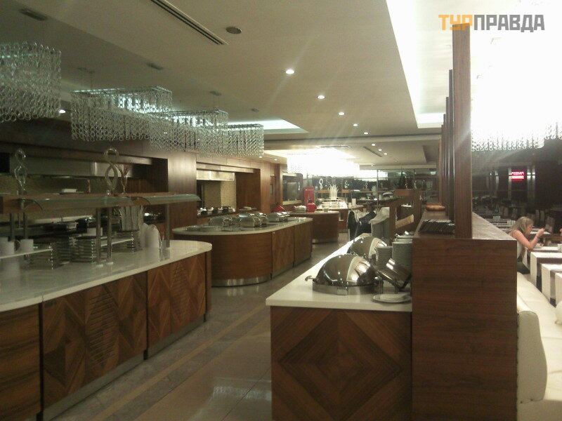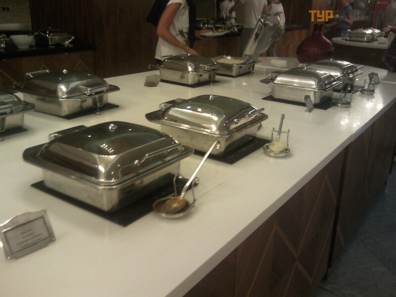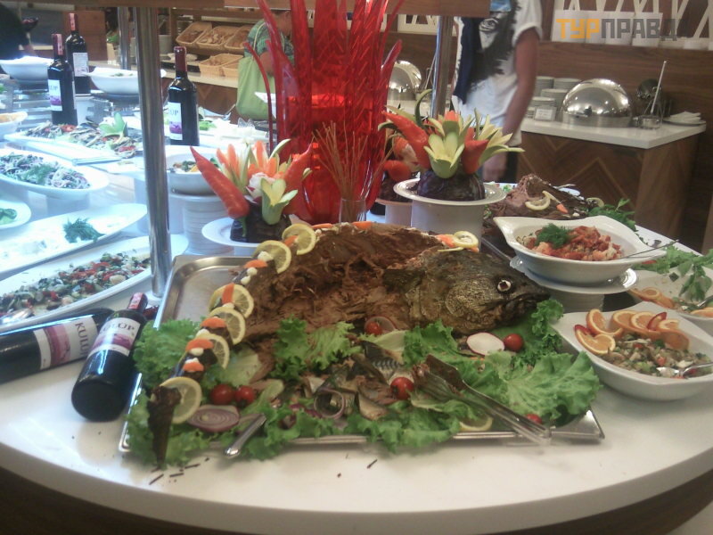 Gł ó wna restauracja „Ambrosia” znajdował a się na parterze i był o wyjś cie na ulicę dla tych, któ rzy chcieli zjeś ć na ś wież ym powietrzu. Mieliś my jedzenie, jak we wszystkich dobrych "pią tkach" - "UAI, ultra all inclusive", oczywiś cie bufet. Uwielbiał em jedzenie i wybó r. Poza tym nie spodziewał em się niczego innego. Kelnerzy sami nalewali wino z butelek i przynieś li colę z baru, któ ry znajdował się w holu przy wejś ciu do restauracji.