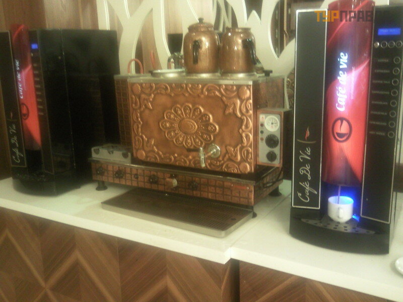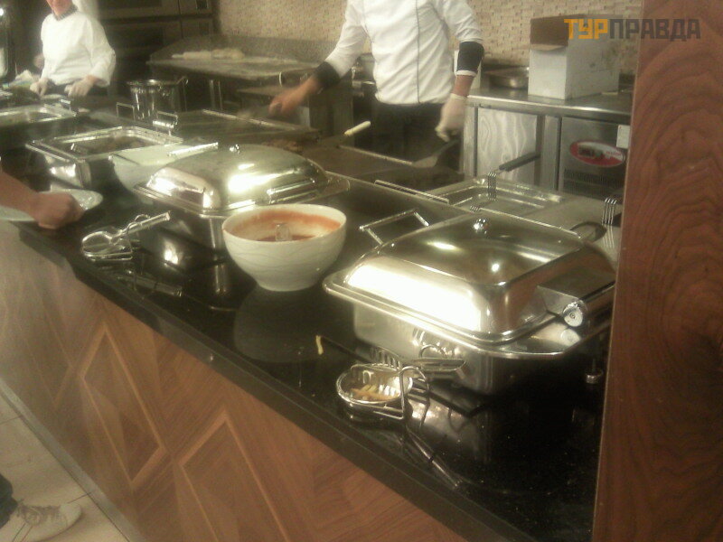 Kiedy siedzieliś my w a la carte, z gł ó wnej restauracji dobiegał a muzyka i ś piew. Od razu zrozumiał em - turecka noc! I zostawiają c napiwek kelnerowi, odwiedziliś my też obiad! ! ! Przy wejś ciu był y ró ż ne smakoł yki i kilka kotletó w. Szczerze mó wią c nie rozumiał em ską d one pochodzą , ale był o pyszne! Siedzą c zobaczyliś my administratora i kelnera z A la Carte. Uś miechnę li się do nas z zaskoczeniem!! !