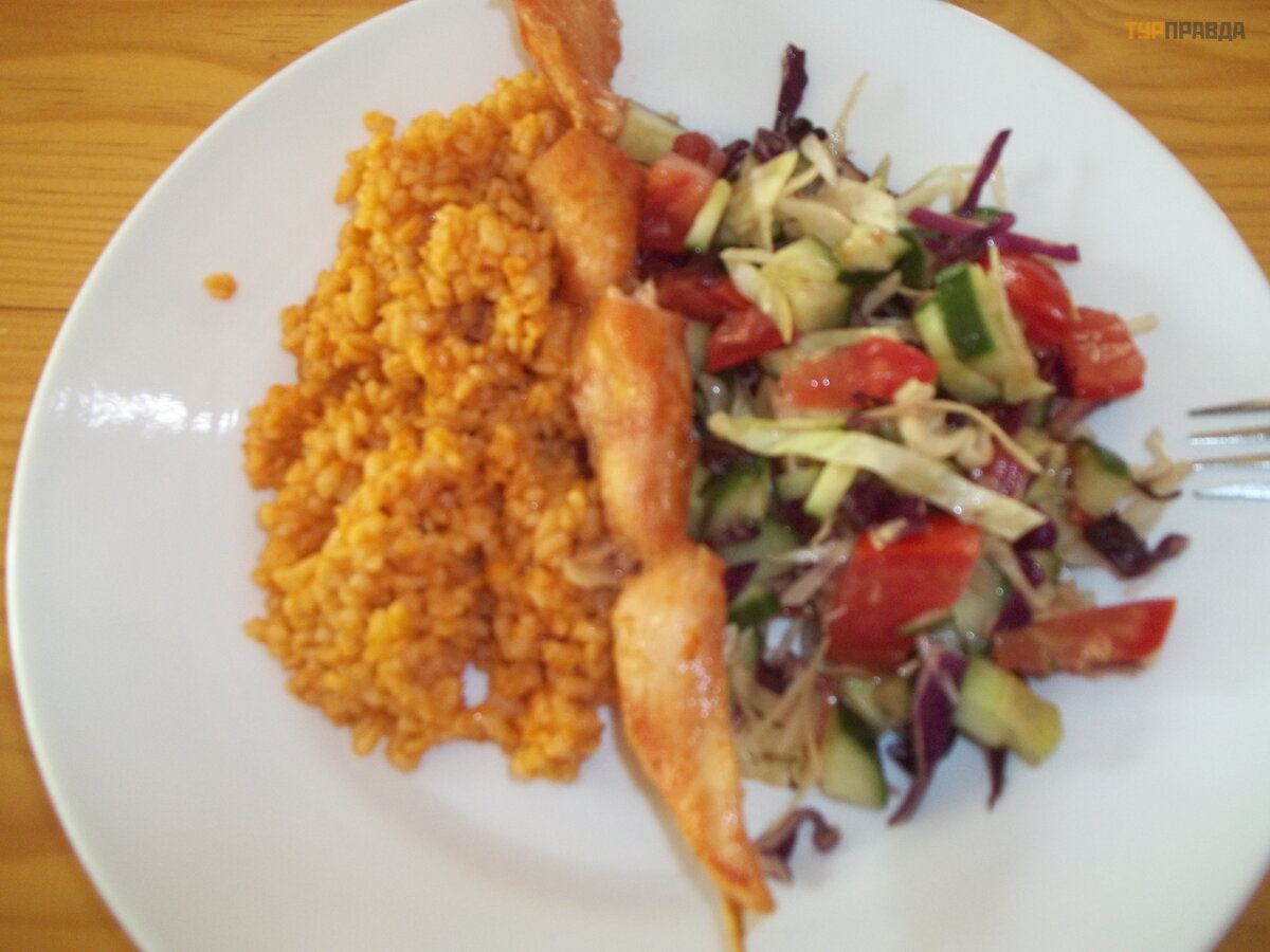 Ale przeż yliś my. Wycią gnę li tratwę na brzeg, jakoś zmyli bł oto z wę ż y, przebrali się w suche ubrania i poszli na obiad. Obiad był raczej skromny - ł yż ka owsianki, ł yż ka sał atki i mał y szaszł yk ś wię tego tureckiego zwierzę cia - kurczaka.