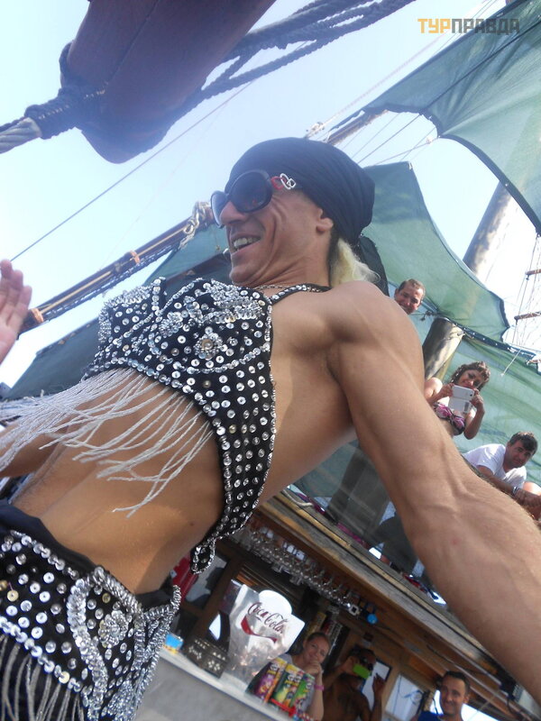 Pojechaliś my na kolejną wycieczkę , aby popł yną ć ł odzią . To był a ś wietna zabawa, pienista dyskoteka, dobry lunch, a co najważ niejsze, sam kapitan statku zatań czył dla nas zapalają cy taniec turecki!