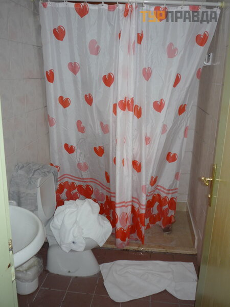 ВАННАЯ КОМНАТА – дикость какая-то: с одной стороны – на полу постелен мрамор, а с другой стороны – очень страненькая зановесочка (с сердечками) и форточка не открывалась полностью, упираясь в душ. Вода горячая и холодная. Напор нормальный. СОВЕ: так как на полу мрамор – стелите полотенце под ноги – очень скользко.