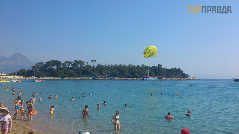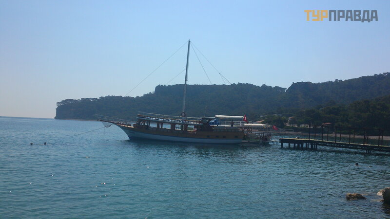 Мы выбрали катание на банане-катамарне и не прогадали. Стоимость 10 долларов с человека. Это не просто банан, а типа катамаран: состоит из двух бананов и очень устойчивый. На всех надевают спасательные жилеты и с Вами будет 2 (два) менеджера: капитан на лодке, что тащит банан-катамаран, и фотограф. Многие отдыхающие были с детьми. Поездка очень веселая. Два купания. И САМОЕ главное: подвозят вблизи БЕЛОГО ПЕЩАНОГО пляжа древнего города ФАЗЕЛИС и по пути разрешают купаться в ПЕЩЕРЕ.