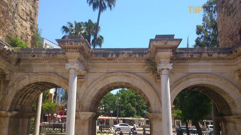 Brama Hadriana znajduje się przed wejś ciem do starej czę ś ci miasta/Starego Miasta, a po drugiej stronie znajduje się wspaniał y Park Karaalshuglu (Park Karaalioglu).