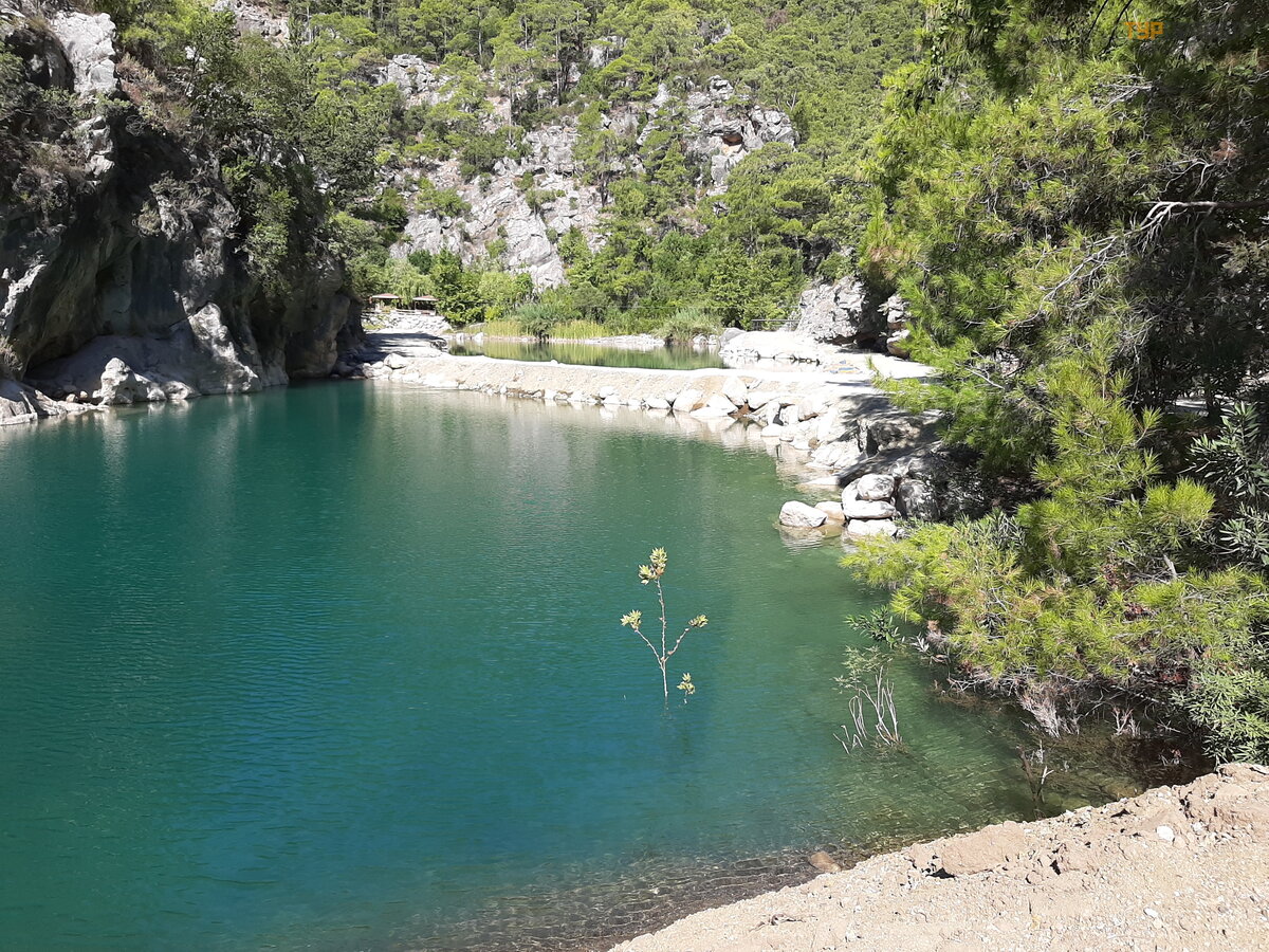Pojechaliś my taksó wką do kanionu Goynuk. Od hotelu do wejś cia - 20 USD. Szliś my kanionem na piechotę i tam iz powrotem, nie korzystaliś my z usł ug jeepa. Oczywiś cie cię ż ko był o jechać , upał prawie poniż ej 40, ale był o ciekawiej. Chociaż nie tak ekstremalne i ekscytują ce jak droga wzdł uż duż ego krę gu cisowego bukszpanu w Adler. Kanion podobał mi się , pł ywaliś my w gó rskim jeziorze, woda jest zimna, ale bardzo orzeź wiają ca, do wą wozu nie wchodziliś my w piankach, wystarczył a zwykł a ką piel.
