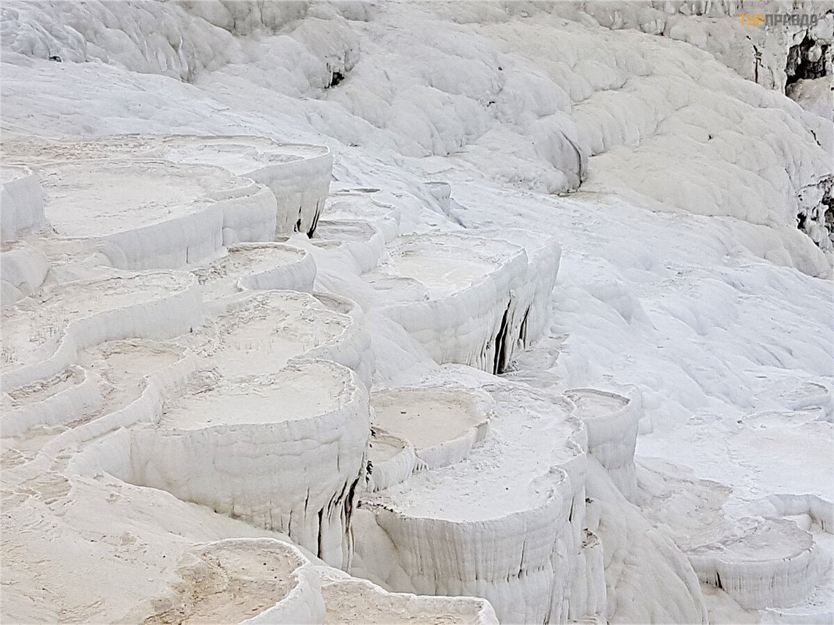 Wię c co się stał o? Wyró ż nił bym dwie gł ó wne wersje. Pierwsza, moż na by rzec, oficjalna jest wynikiem niesamowitej inwazji turystó w. Tutaj, jak mó wią , dbali, dbali i nie oszczę dzali. „Przechodzą ” tu wszelkiego rodzaju ludzie, niszczą i niekorzystnie wpł ywają na naturalny punkt orientacyjny. Wyglą da na to, ż e kompleks SPA był kiedyś na tym terenie, ale zmienili zdanie i zburzyli ten biznes. Ale… tu podcią gana jest druga wersja, ludowa, bardziej realna – wody termalne spuszczane są rynnami do niezbę dnych zbiornikó w. A stamtą d są już rozprowadzane do licznych hoteli uzdrowiskowych, któ re już wybudowano w samej wsi. W rezultacie tarasy cukrowe lub baweł niane (jak kto woli) z powodu braku uzupeł nienia w niezbę dne sole i minerał y stał y się szaroż ó ł te, martwe.
