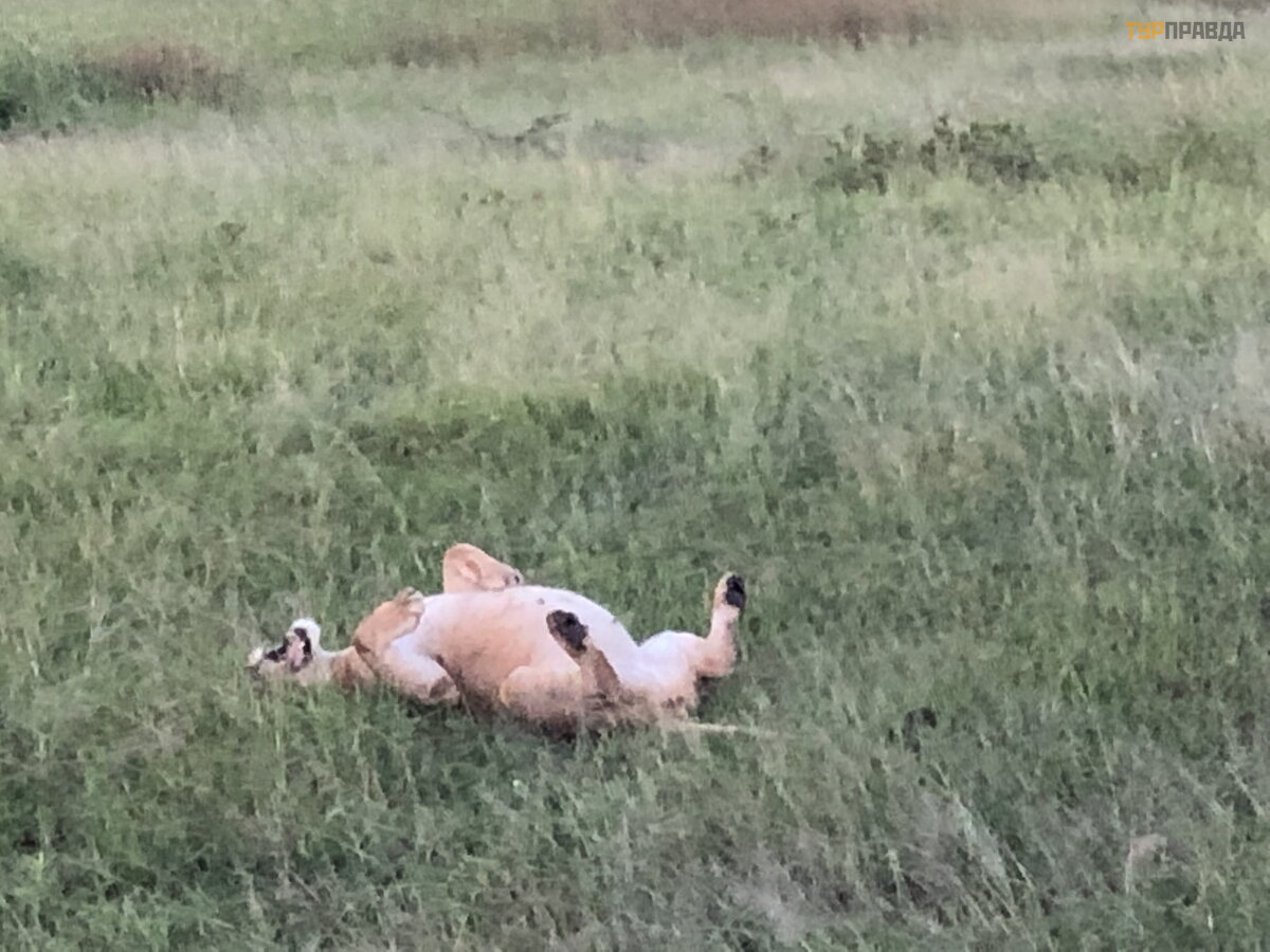 Widzieliś my, jak dobrze odż ywione lwice tarzają się po trawie.