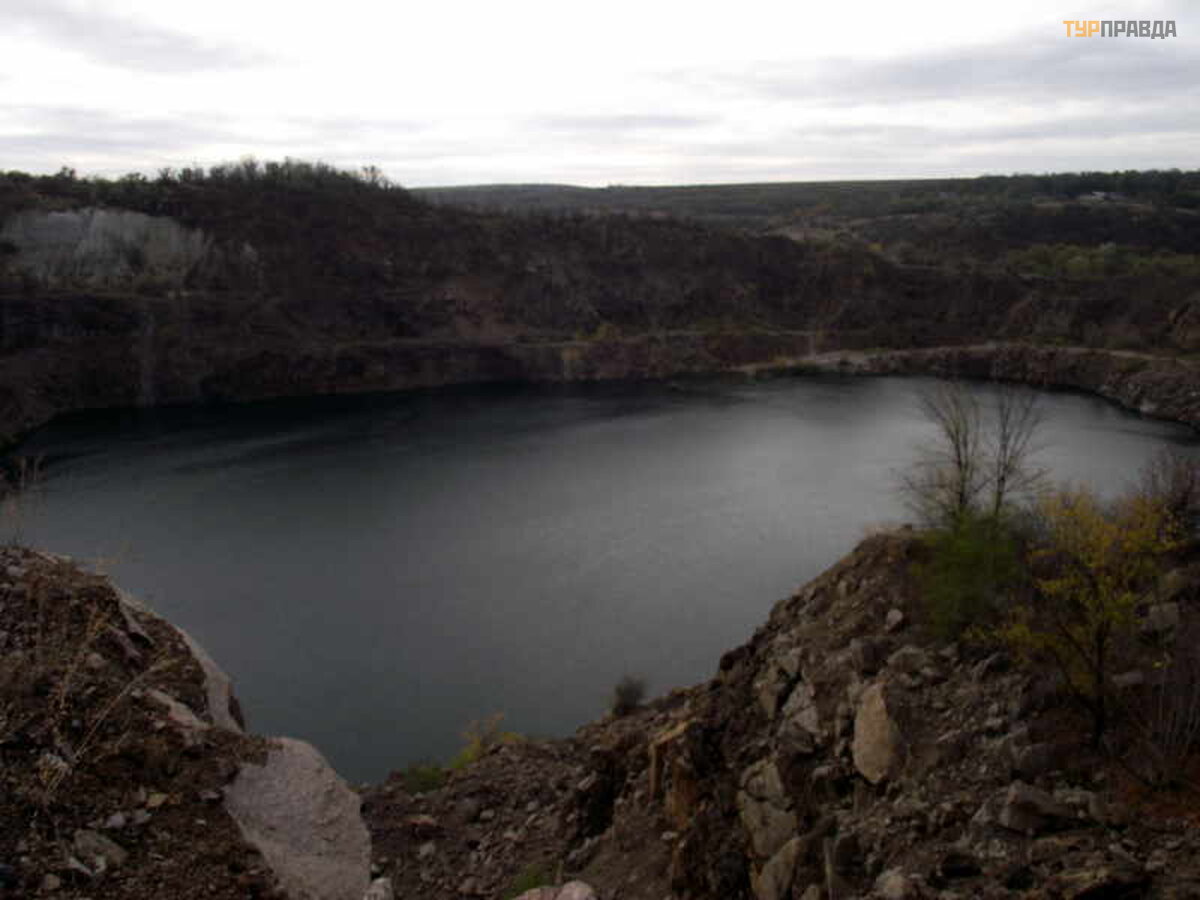 Неожиданно перед глазами предстает замкнутая горная цепь. А там внизу раскинулась спокойная гладь воды. Его называют голубым или радоновым озером. Проще говоря это бывший гранитный карьер. После прекращения добычи камня он заполнился изумительно чистой и прозрачной родниковой водой. Прекрасное место для купание.