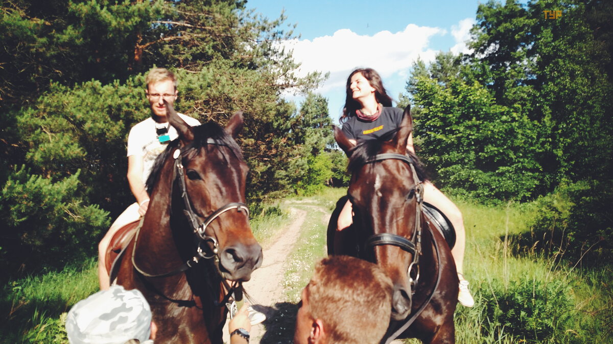 Miał em też okazję jeź dzić konno i przy ognisku. Powiem, ż e jest bardzo fajnie, konie są bardzo przyjazne, czuł am się jak Joanna d'Arc jadą c wzdł uż Vorskli i obserwował am zachó d sł oń ca nad horyzontem. Wiek dzieci od 10 do 22 lat, za 10 dni koszt obozu - 5000 UAH.