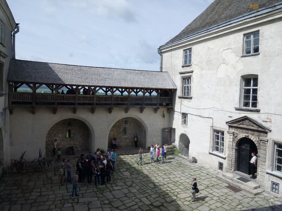 Sam zamek jest mał y, ale miał charakter obronny. Obecnie zamek posiada filię galerii sztuki. Oto obrazy, ikony, przedmioty z XVI-XVII wieku. W jednej z sal na cał ej ś cianie znajduje się ogromne pł ó tno - "Bitwa pod Wiedniem". To jeden z najwię kszych fatalnych obrazó w Europy Wschodniej.