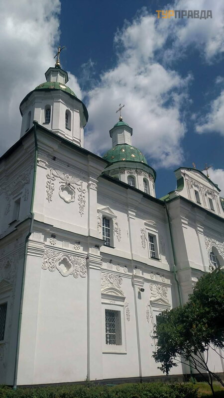 W 1692 r. na miejscu drewnianego koś cioł a, kosztem hetmanó w Iwana Samojł owicza i Iwana Mazepy, zaprojektowany przez utalentowanego wileń skiego architekta Jana Chrzciciela Sauera (Jana Chrzciciela – autora katedry Tró jcy Ś wię tej w Czernihowie) we wspó ł pracy z miejscowymi. Pyryatynsky zbudował kamienną katedrę Przemienienia Pań skiego.