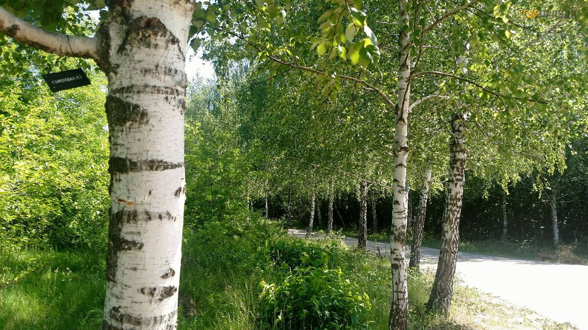Każ de drzewo jest podpisane i posadzone ku pamię ci likwidatoró w i ofiar katastrofy w Czarnobylu.