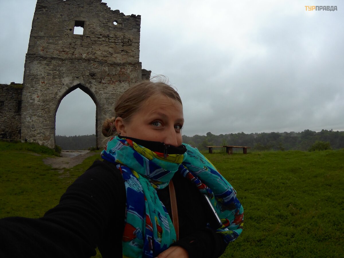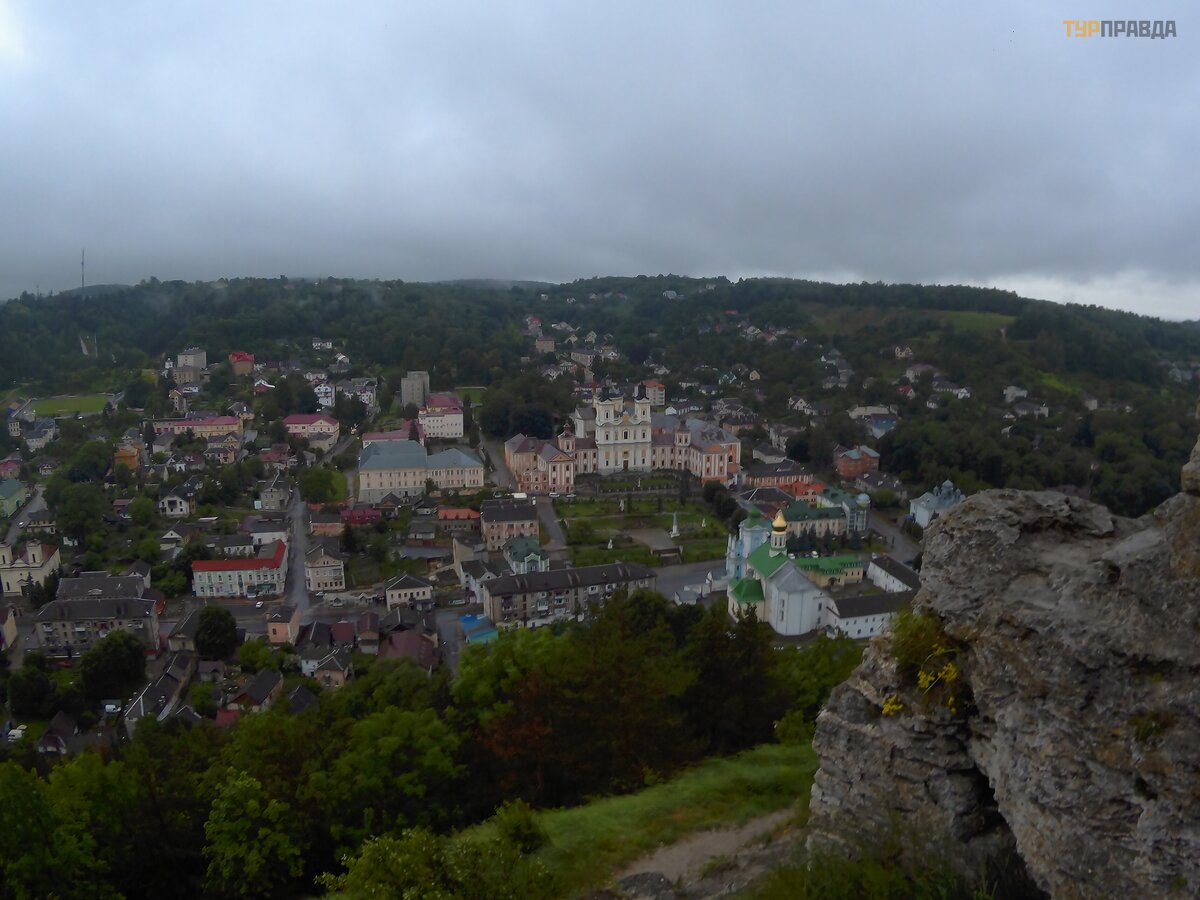 Szliś my spokojnie po zamku w deszczu, patrzą c z gó ry na Krzemieniec.