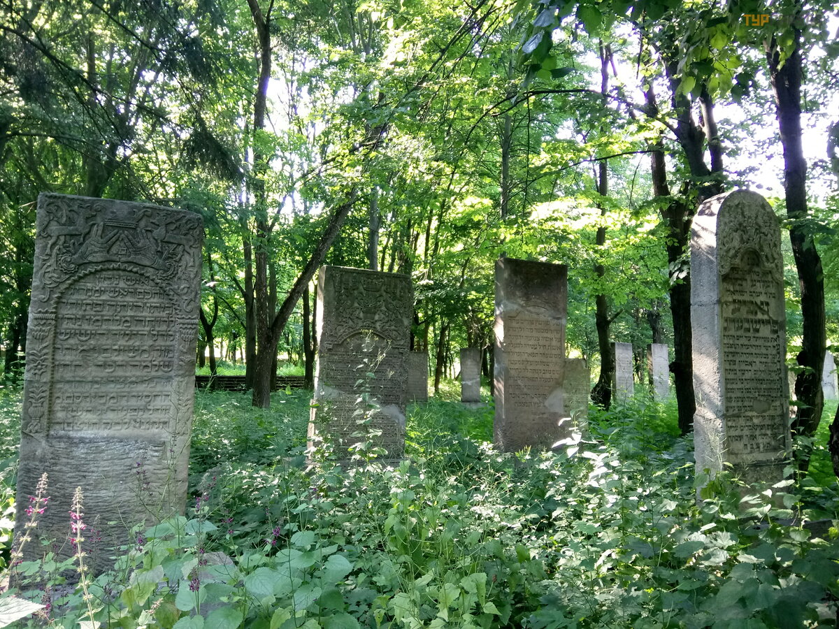 A tam, gdzie jest synagoga, jest oczywiś cie cmentarz. My też tam poszliś my. Niestety wszystko tu poroś nię te jest trawą i pokrzywami.