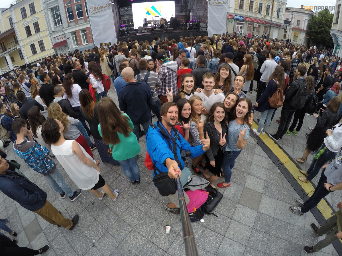 I zakoń czył się nasz spacer w centrum miasta, na ulicy Mychajł owskiej. Dziś koncert na cześ ć mł odzież y. Dowiedział em się o wielu nowych zespoł ach. Pozostał em w tyle za mł odzież owymi trendami. Spotkaliś my się z chł opakami, tań czyliś my, sł uchaliś my muzyki i poszliś my odpoczą ć o pó ł nocy.