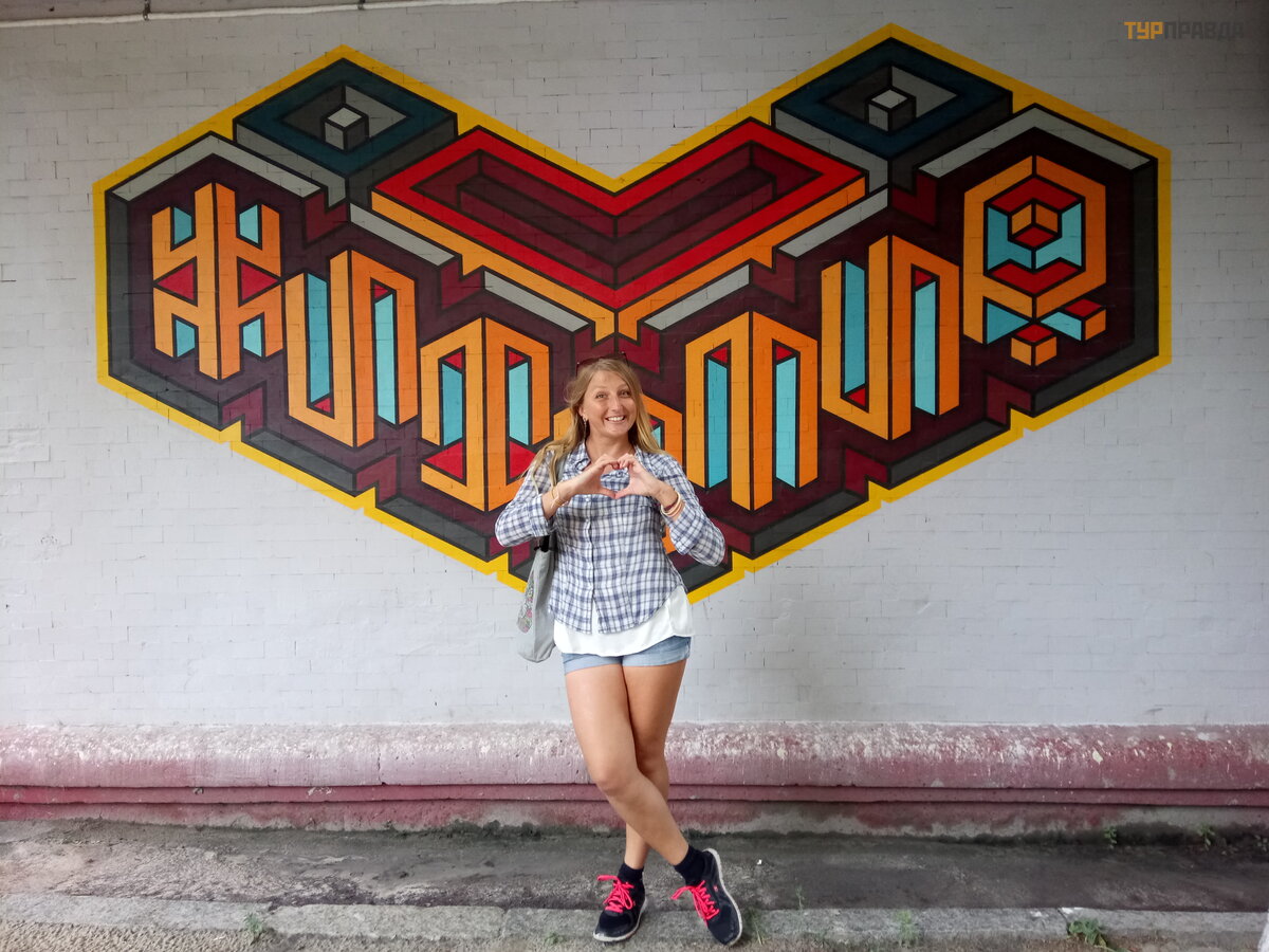 Poszliś my pod wejś cie do miasta i tam nas spotkał a nasza koordynatorka – Anya. Zaraz przy wejś ciu znajduje się stara fabryka muzyki. Kilka lat temu był festiwal sztuki i od tego czasu na domach pozostał y murale i graffiti. Od razu skojarzył o mi się z malezyjskim miastem Georgetown z jego malowidł ami ś ciennymi. Jest wiele fajnych rzeczy!