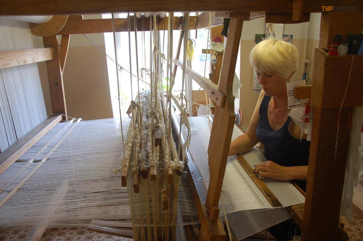 Szczegó lną ró ż nicą fabryki jest to, ż e tu i teraz w jednym ze sklepó w pracują na autentycznych starych krosnach, zachowują c tradycje i kulturę Ukrainy.