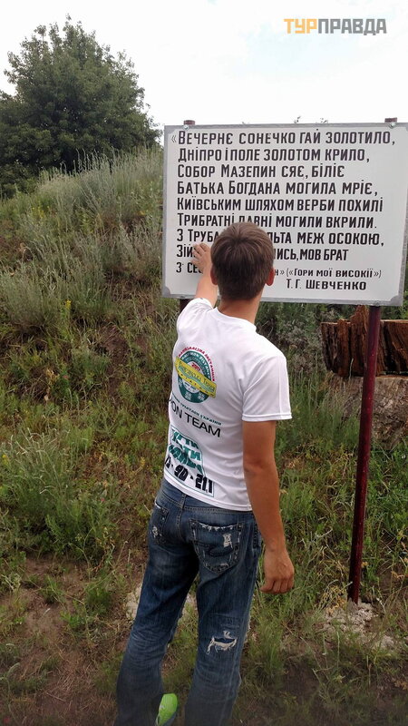 Dzień rozpoczą ł się wizytą na sł ynnym kopcu, któ ry ma ponad 4000 lat, „Trzej Bracia” – bo są tam 3 kopce. Taras Szewczenko pracował w tym mieś cie, wię c tutaj jest tablica pamią tkowa.