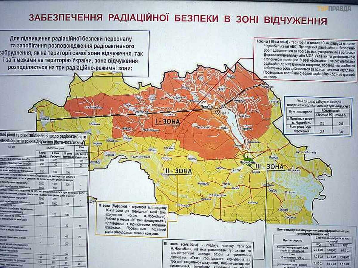 II - najbardziej rozległ y lub bufor rozpię ty mię dzy dwoma pł otami. Zewnę trzna i wewnę trzna, czyli granica dziesię ciokilometrowej strefy. I - wewnę trzny, najbardziej dotkliwy pod wzglę dem poziomó w naraż enia, gdzie znajduje się elektrownia ją drowa i miasto Prypeć . Kształ tem przypomina ję zyk, któ ry wycią gną ł się w kierunku zachodnim. I wreszcie III - któ ry obejmuje czę ś ć terytorium miasta Czarnobyl. Tutaj osoby, któ re pracują na stacji lub w innych obiektach strefy wykluczenia, mieszkają w szczegó lnej pozycji.