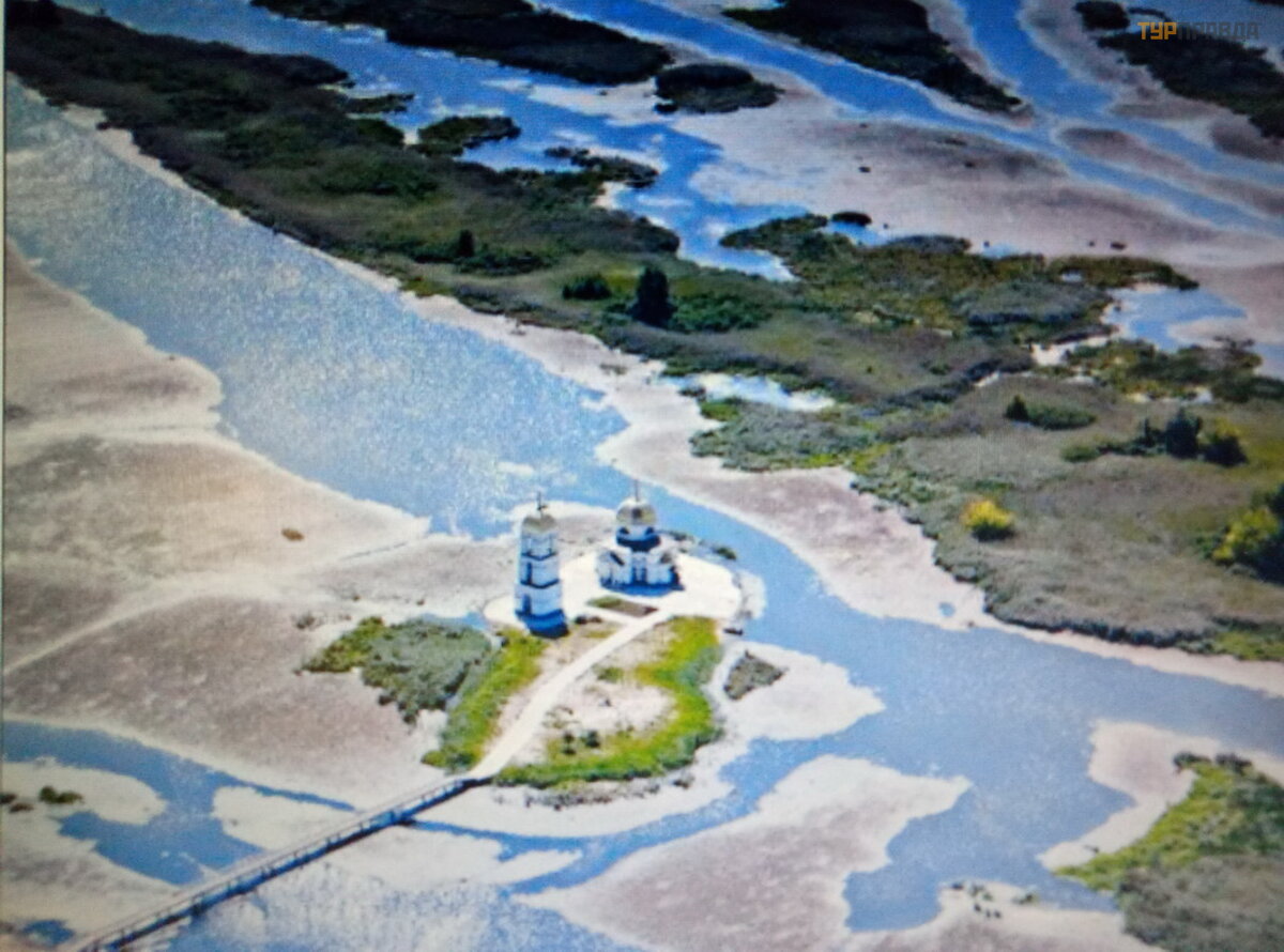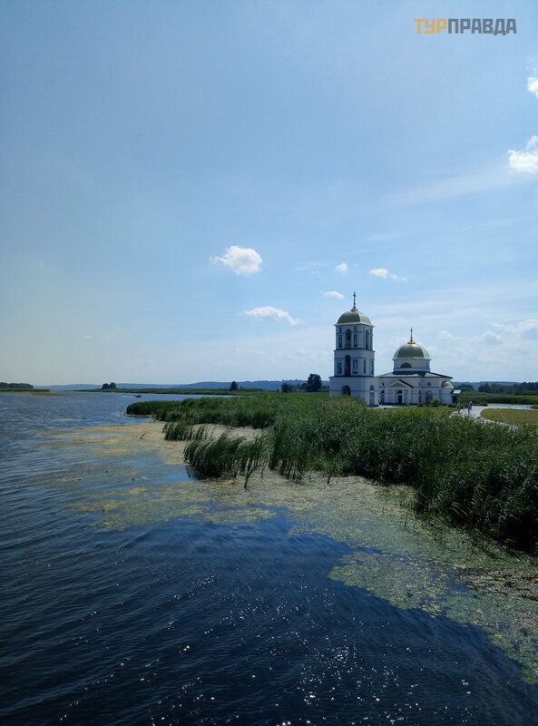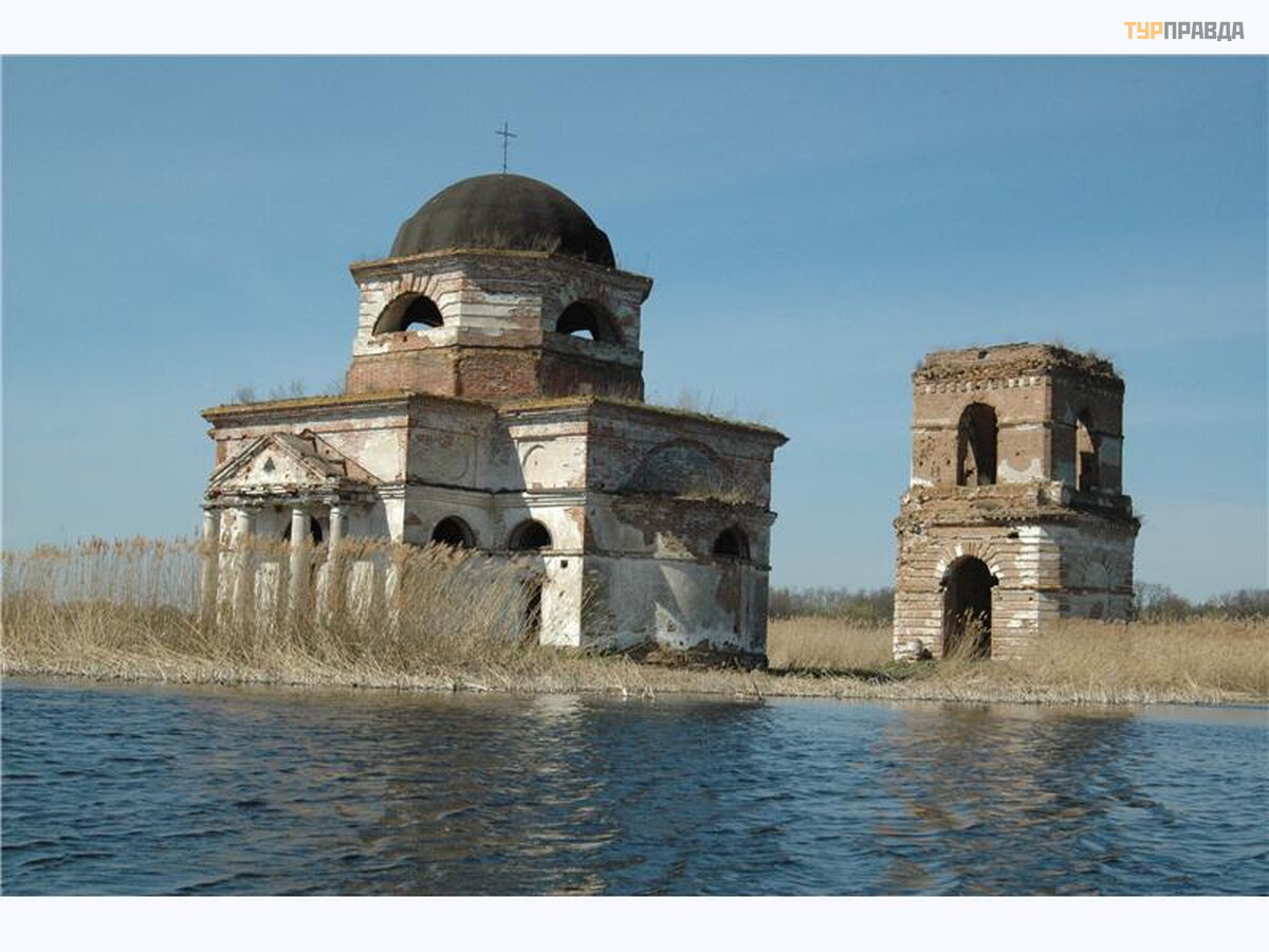 Na skraju wsi Gusintsy cudem ocalał koś ció ł , któ ry do dziś stoi poś rodku Dniepru, na mał ej wyspie.