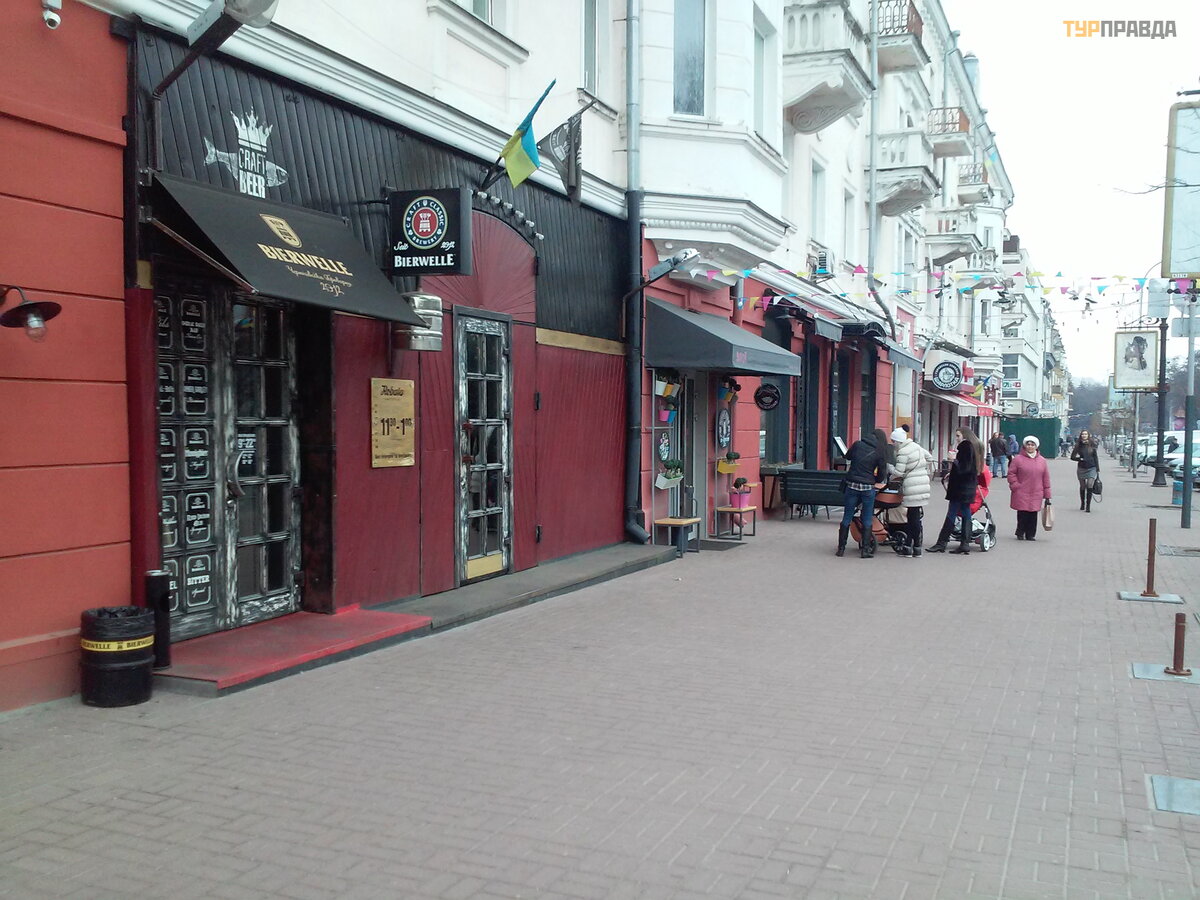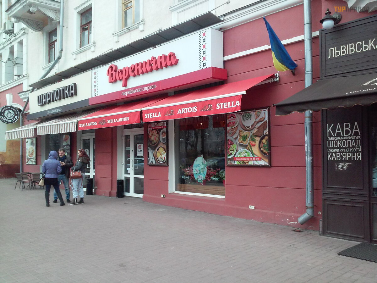 Таково народное название для отрезка проспекта Мира от историчекого Вала до Красной площади (паралельно Аллее Героев — в Чернигове бульвар назван проспектом, что не отражает сути, поэтому в центре улицы как-бы сквер с памятниками и фонтанами, а около домов пешеходная часть где и находится то, что нас интересует). Именно около домов (фактически около въезда в город) находятся всесезонные кафе и ресторанчики (которых с каждым годом становится все больше). При этом, смена сезонов меняет эту пешеходную часть улицы: летом — это яркая клумба со столиками, весной-осенью — уютное место с пледами и креслами. Ну, а на Новый год — все сверкает украшениями и похоже на рождественскую ярмарку (хотя уличных столиков уже не увидишь:). И поскольку открытие туристического сезона обычно наступает в апреле (иногда ближе к середине), гостям города и туристам надо знать — где же можно перекусить в центре? Теперь у нас есть такое место — вам только нужно выбрать кафешку на небольшом “пятачке”! Хрю :). Приехали из Киева на авто, осмотрели Вал (он на вьъезде в город), проехали немного до конца квартала по прямой — и тут тебя ждут! Подкрепились, развернулись на выезд по Красной площади (у нас можно :), потом проехали квартал, свернули на лево и в сторону Болдиной горы (вторая важная достопримечательность с церквями, пещерами и курганами) и можно возвращаться домой (это минимально короткая, но насыщенная программа). Все компактно — дня хватит на осмотр. Но, мы про еду... :)