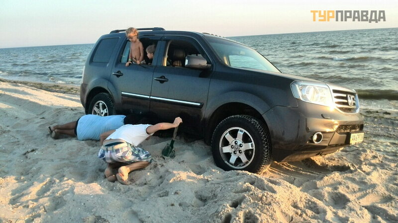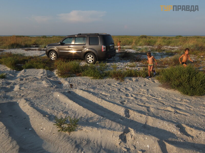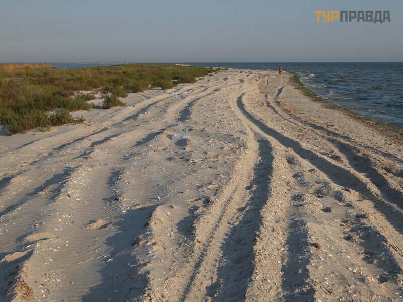 Po przejechaniu doś ć piaszczystych dró g Mierzei Kinburn mogę powiedzieć , ż e najbardziej obrzydliwym kawał kiem drogi na Mierzeję nie jest piasek, ale asfaltowa droga z Golaya Pristan do Geroisk. Tak podstę pnych i licznych doł ó w nigdy nie widziano nawet przy znanej na cał ej Ukrainie autostradzie Odessa-Reni. Przejechaliś my odcinek 50 km przez 2 godziny. Potem wyjazd na piaszczystą drogę wzdł uż lasu i jezior był relaksują cym doś wiadczeniem. A wię c: