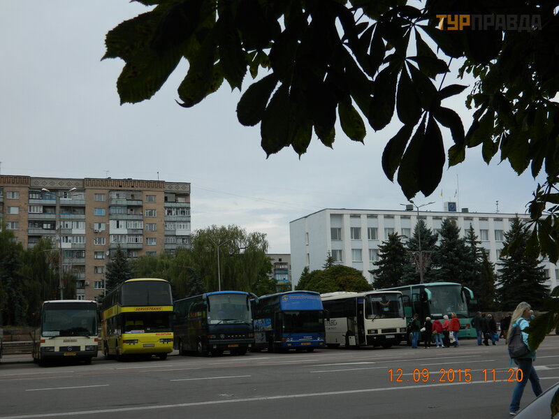 Autobusy wielu touroperatoró w ustawił y się w rzę dzie na począ tku placu przed Urzę dem Miasta: