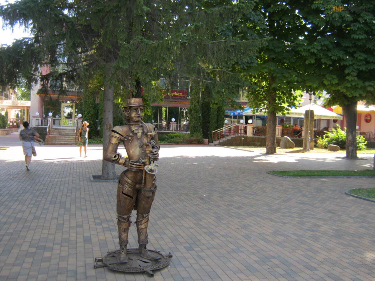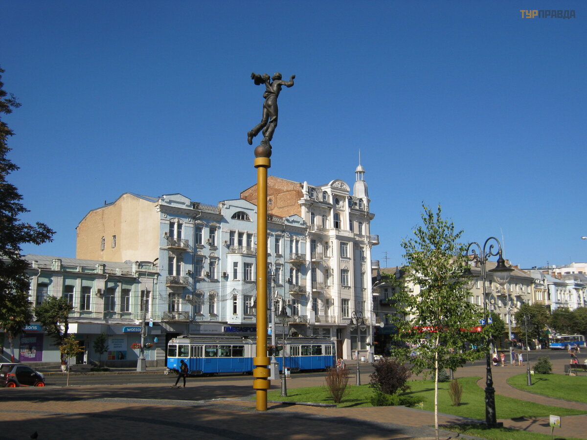 Современная скульптура на площади г. Винницы, на заднем фоне отель "Подолье"