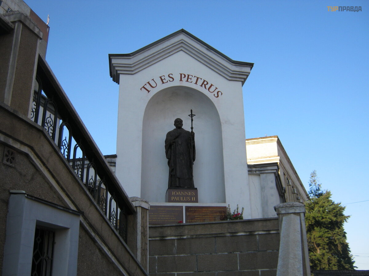 Памятник папе Иоанну Павлу П возле костела в Виннице