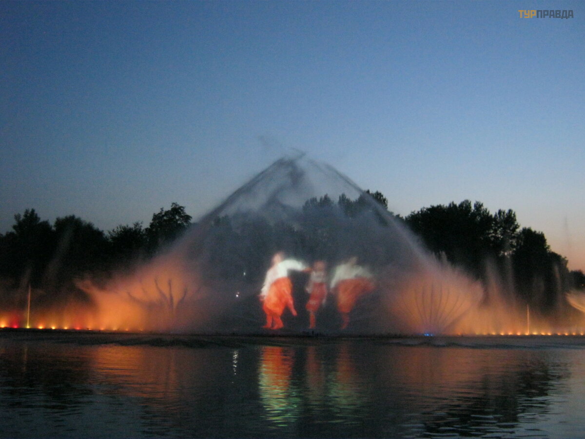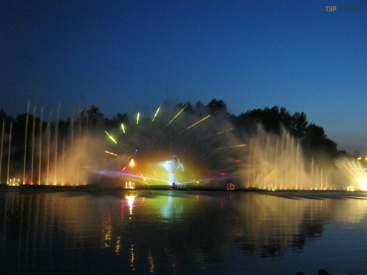 W takim razie zacznijmy! Program pokazó w, jak mó wią , zmienia się regularnie, ale jestem pewien, ż e na Ukrainie nie ma lepszego pokazu fontann. Na począ tku fontanny są po prostu oś wietlone.