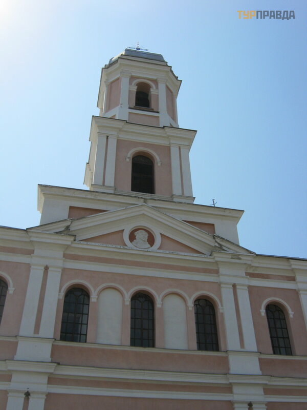 Он был построен в 18 веке по проекту Паоло Фонтана, известного архитектора того времени. Изначально собор был католическим костелом. Превращение католического костела в православный храм произошло в 1832 году. Событие это ознаменовалось установкой куполов на крыше боковых башен.