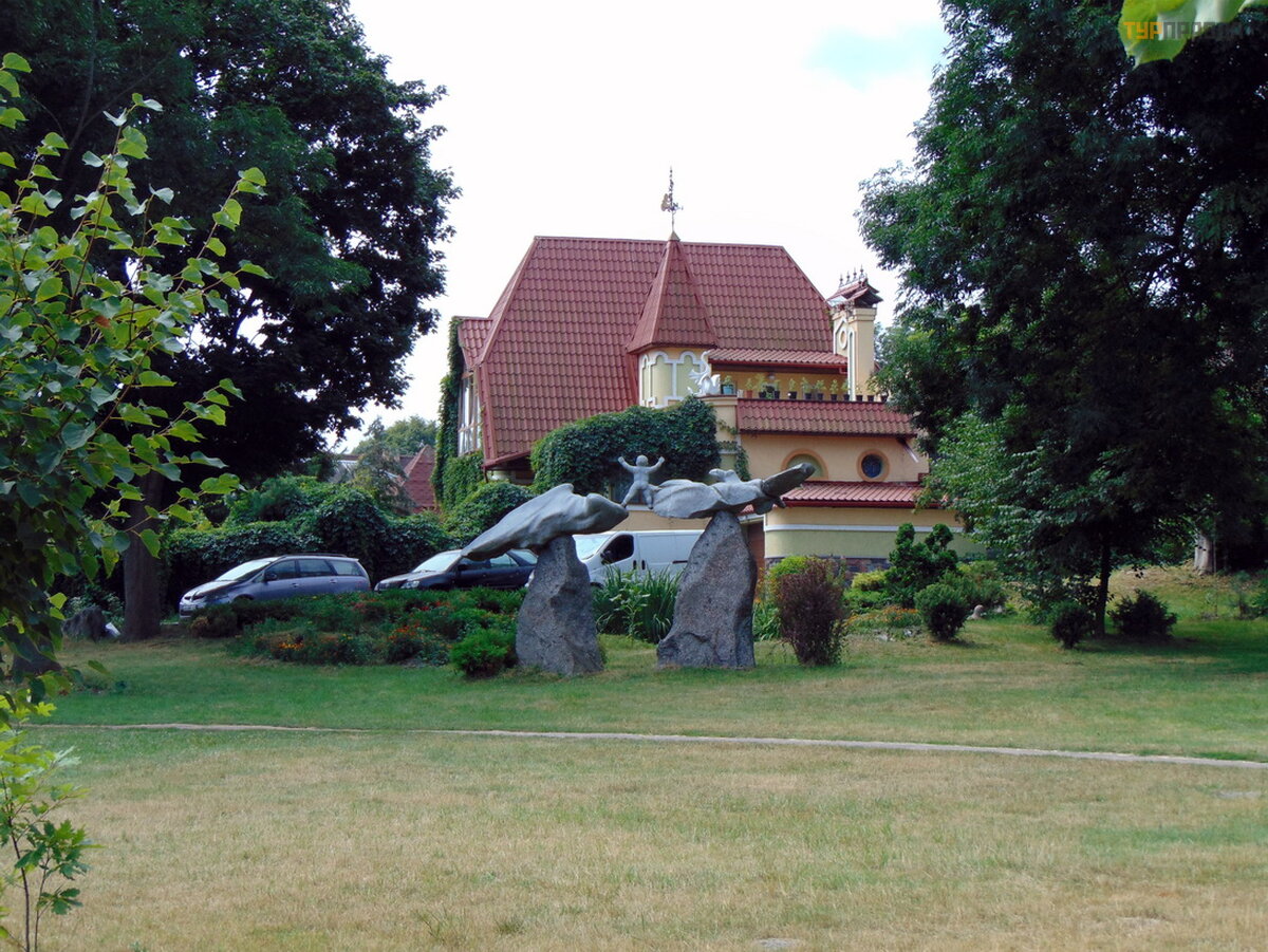 W parku znajduje się ró wnież niezwykł y dom rzeź biarza.