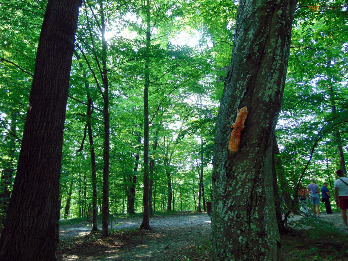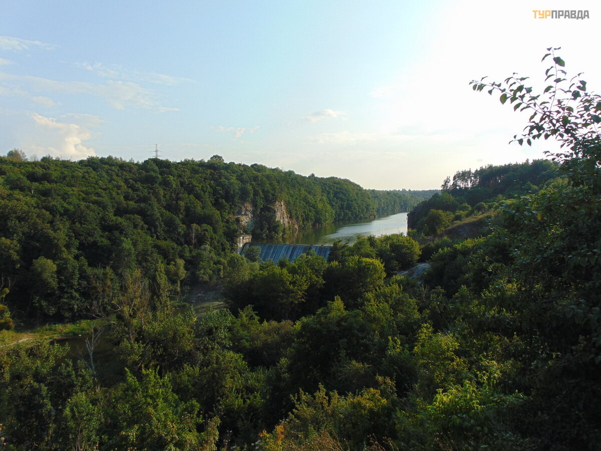 Niedaleko klasztoru znajduje się tama na rzece Teterev. A przed nią rosną dę by, któ re mają już.600 lat!