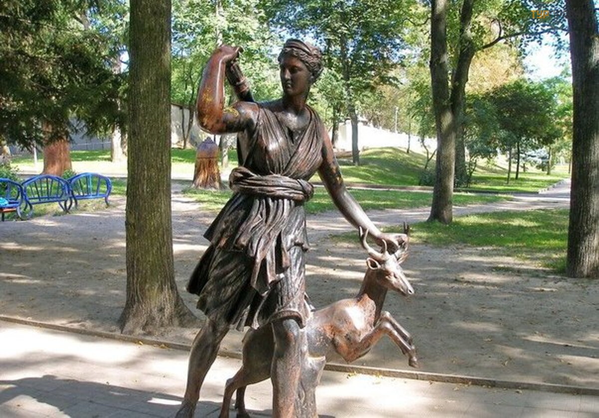 . . . pomnik bogini Artemidy, któ ry został poważ nie uszkodzony podczas II wojny ś wiatowej, ale został odrestaurowany i zwró cony do parku.