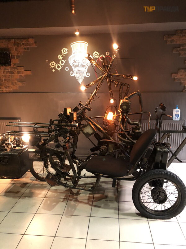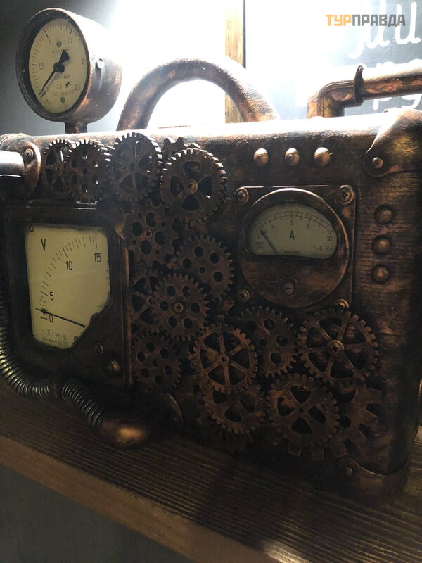Aby goś cie się zbytnio nie zdenerwowali, kelnerka prowadzi nas do piwnicy pubu, któ ra urzą dzona jest w strefie zdję ć w stylu steampunk. . .