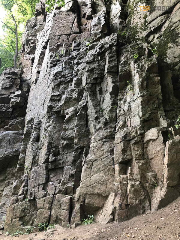 Wysokoś ć skał w tych miejscach się ga 20-25 metró w, a dł ugoś ć ponad 150 metró w. Masyw jest niewielki, ale bardzo malowniczy i od dawna wybierany przez wspinaczy skalnych.