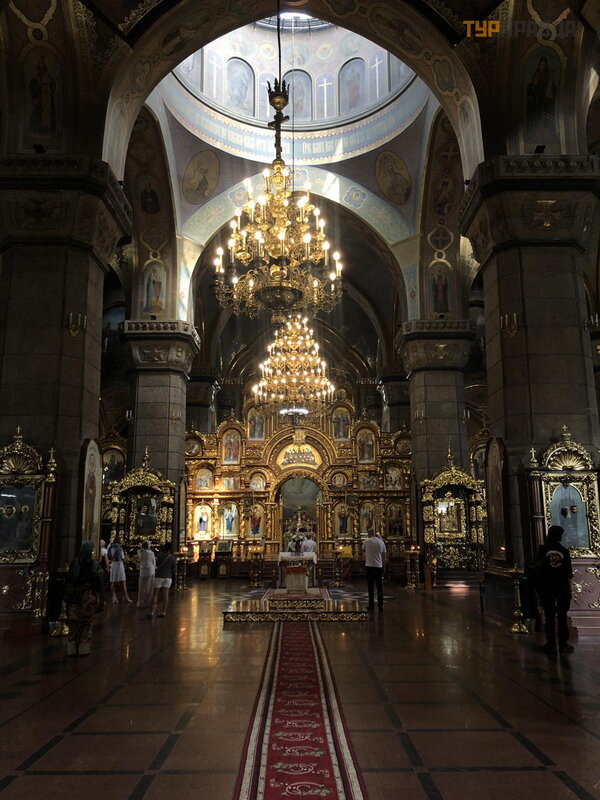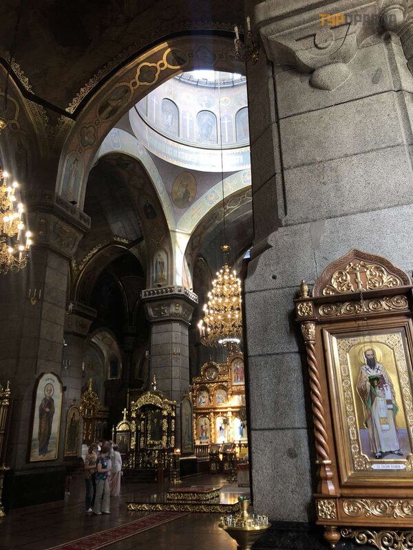 Katedra został a zbudowana w stylu staroruskim, ale uderza nie tylko jej rozmiar: wzrok natychmiast przycią gają trzy trony – Przemienienie Pań skie oraz ku czci księ cia Wł odzimierza i Aleksandra Newskiego.