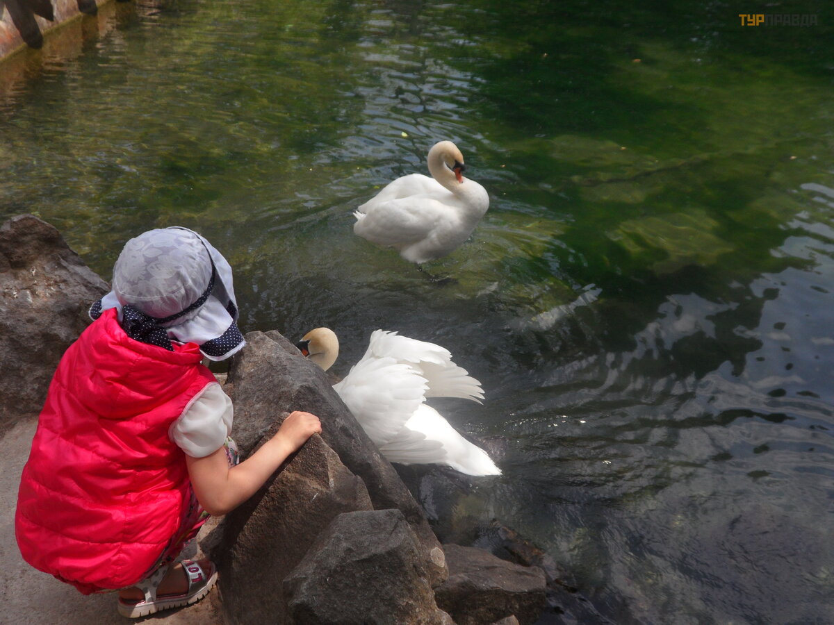 Wspię liś my się do gó rnego parku, gdzie jest jezioro z ł abę dziami)) Dziecko był o zachwycone))) A pię kno jest takie))