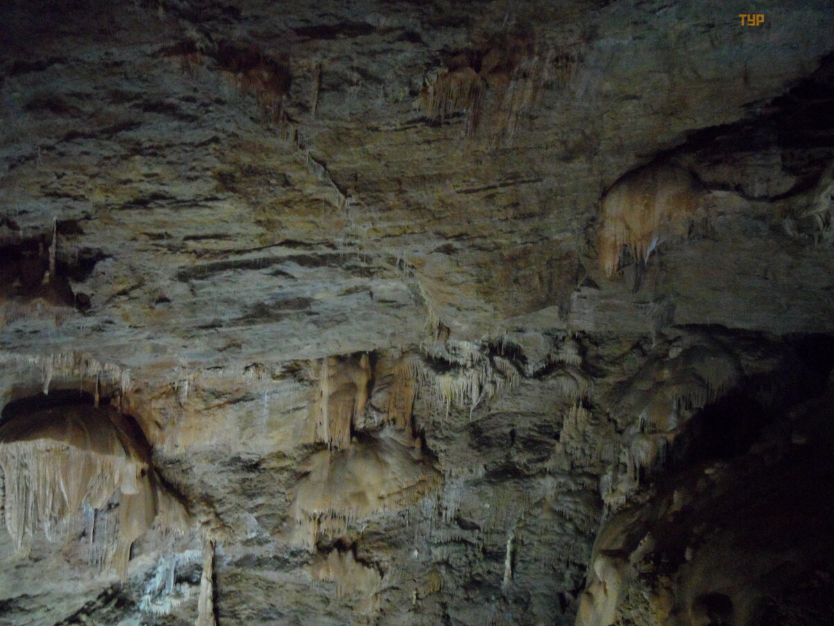 Zostaliś my z grupą z przewodnikiem i udaliś my się do niedawno odkrytej jaskini Jał tań skiej, któ ra ró wnież znajduje się na pł askowyż u, cena wstę pu to 200 rubli.