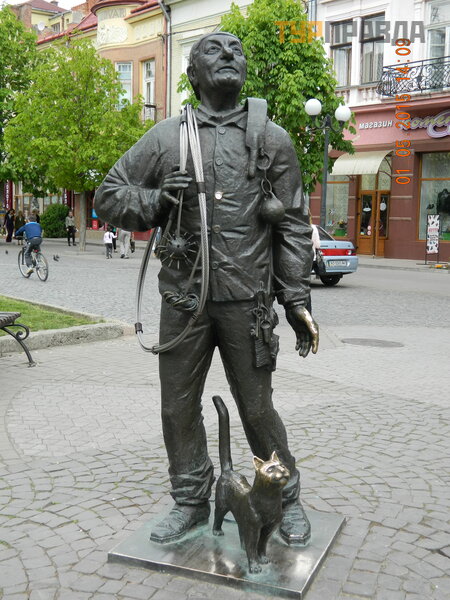 On (pomnik) jest trochę wyż szy niż mę ż czyzna ś redniego wzrostu. A prototyp - kominiarz Mukaczewo Bertalon Tovt - w ż yciu dwa razy mniej (! ). A jak inaczej dostaniesz się do komina? ! ! Nie wiem, czy to bajka, czy nie, ale mó wią , ż e kiedy wł adze miasta poprosił y go o stworzenie pomnika na jego cześ ć , jedynym warunkiem Tovta był o, aby pomnik miał normalny wzrost.