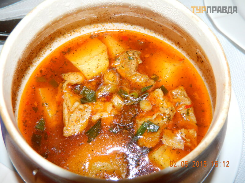 Jednak co tu duż o mó wić , obiad na Zakarpaciu to uczta. Ale cał e to cudowne pikantne i obfite jedzenie jest dla naszego brata trochę niezwykł e i za kilka dni zwykle marzy o jakiejś lekkiej, niezbyt obfitej zupie, bo tubylcza wą troba „przecina” na bok i pyta: „Don' nie jeś ć , co? ! ! »