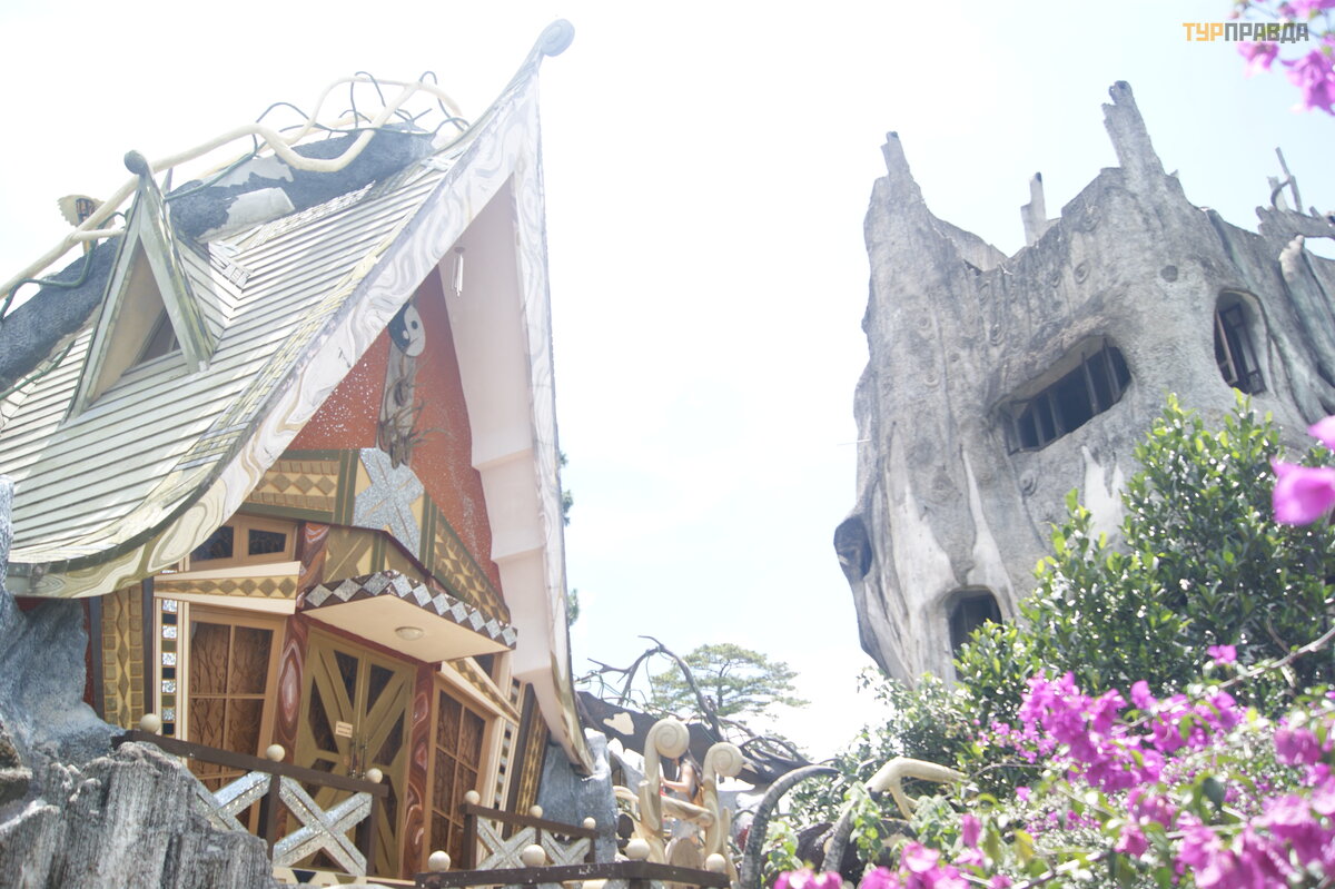 Dlaczego wszyscy jadą do Dalat wzdł uż serpentyny ? ? ? Oczywiś cie, aby zobaczyć niezwykł y hotel Guest House "Hang Nga". Pokazali i opowiedzieli o nim oraz w "Orle i ogonie". Moim zdaniem miejsce jest naprawdę niezwykł e, ale nie zaznał am zachwytu. Turyś ci są ciemno, miejsc jest niewiele.