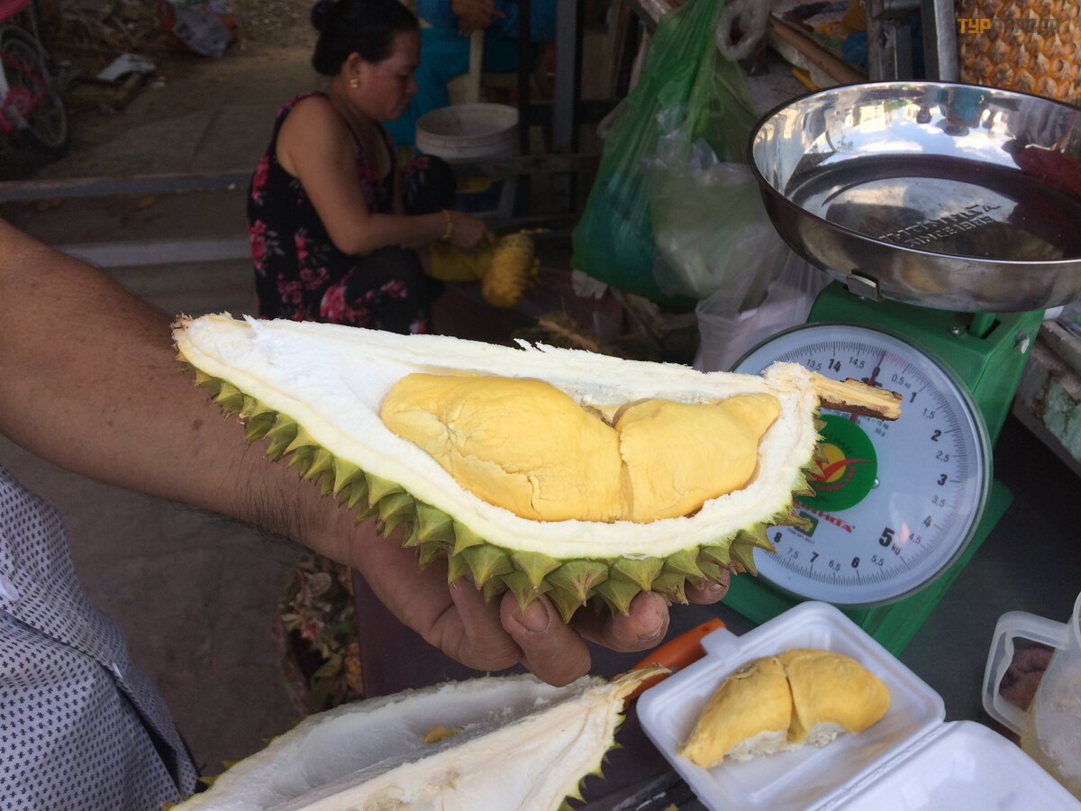 Był y prawie wszystkie owoce: ż ó ł te MANGO 35 dong, zielone (do sał atki) 30 dong, ró ż owe 40-80 dong. Są mangostany (VND 120), durian (VND 120), smoczy owoc, papaja (VND 35), marakuja, rambutany, sapodilla (wyglą da jak ziemniak, smakuje jak gruszka), jabł ko cukrowe, kwaś nica i wiele innych. p>