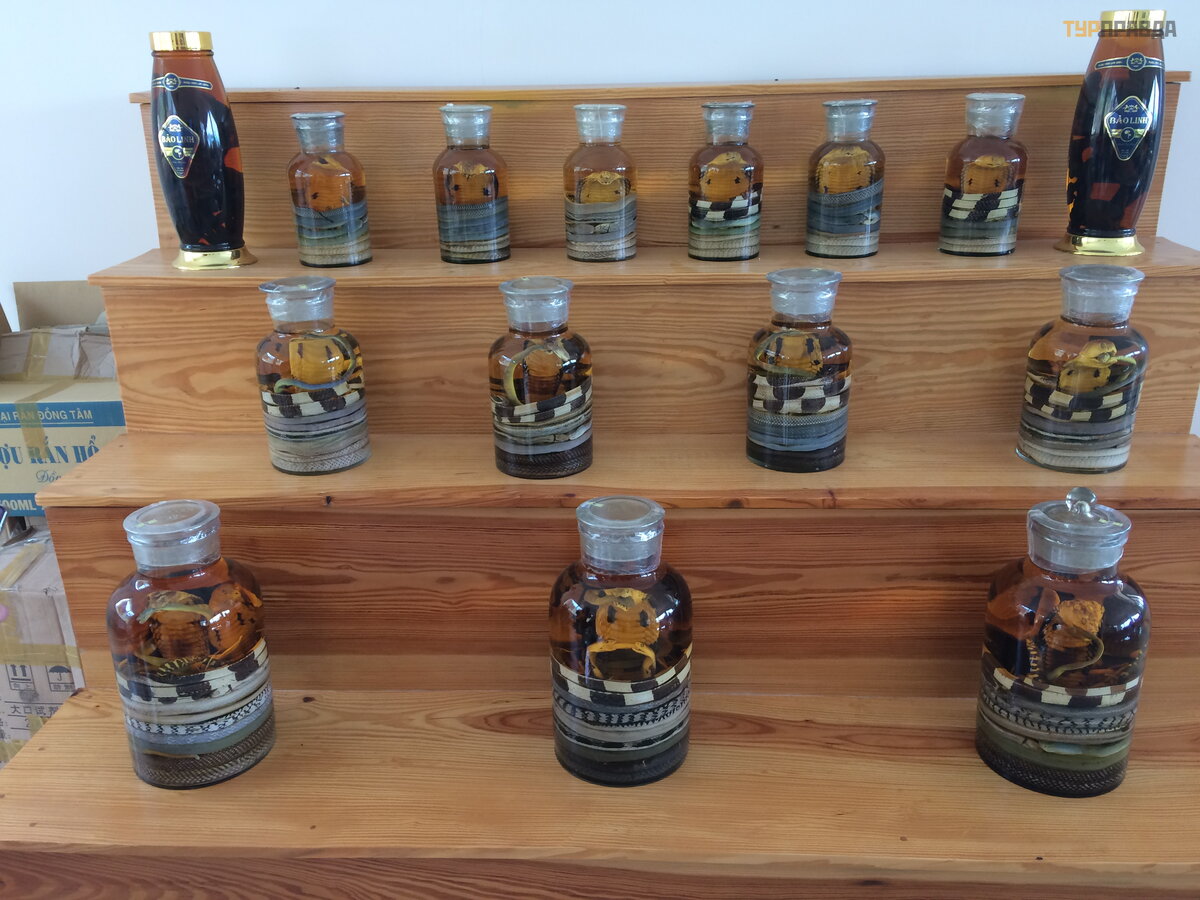 „Wietnam na lewą stronę ”. 65 dolaró w. 8.45 - 13.30. Rozpoczyna się ś niadaniem: wietnamska kawa i domowe sajgonki. Potem farma wę ż y – kilka wę ż y w klatkach i zagrodach, zdję cie z pytonem na szyi, gibony, makaki, kozy, jelenie, indyki. Nalewka 1l - 500 dong, wą ż w nalewce bardziej przypomina prawdziwego niż w aptece (550 dong).