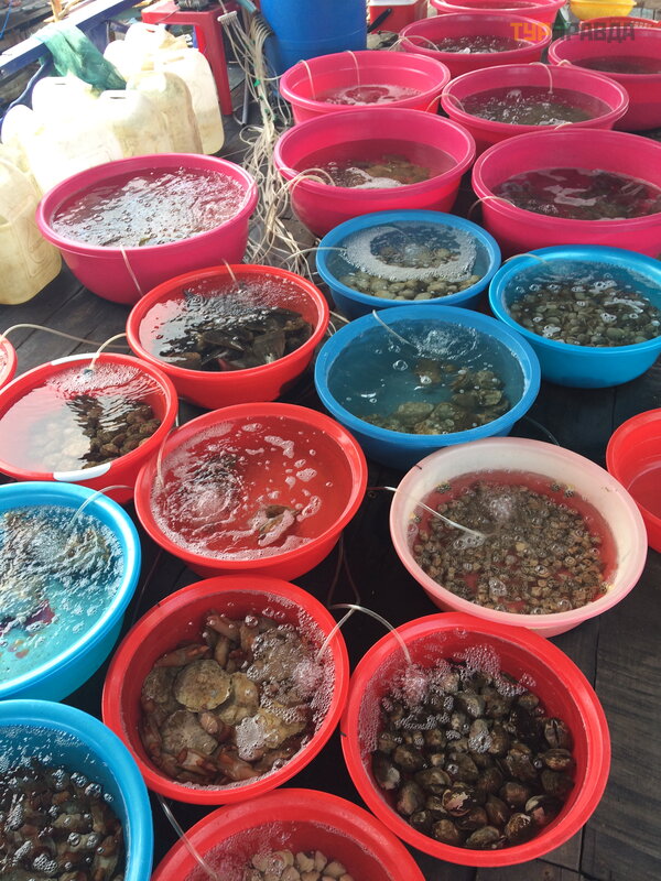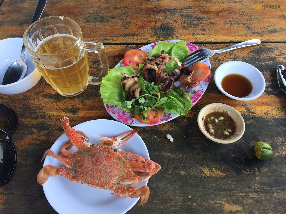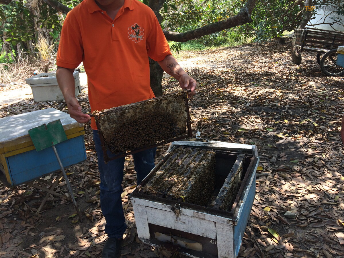 Pszczela farma: pozwalają mi trzymać i pró bować plastry miodu (bardzo smaczne), mió d - 550 VND litr (1500 rub. kg). Ró wnież w szklanej butelce (mó wili, ż e skoń czył o się na plastiku). Nastę pnie zabrano nas na obiad: gotowany krab, smaż one kalmary i zupa z domową rybą cobia.