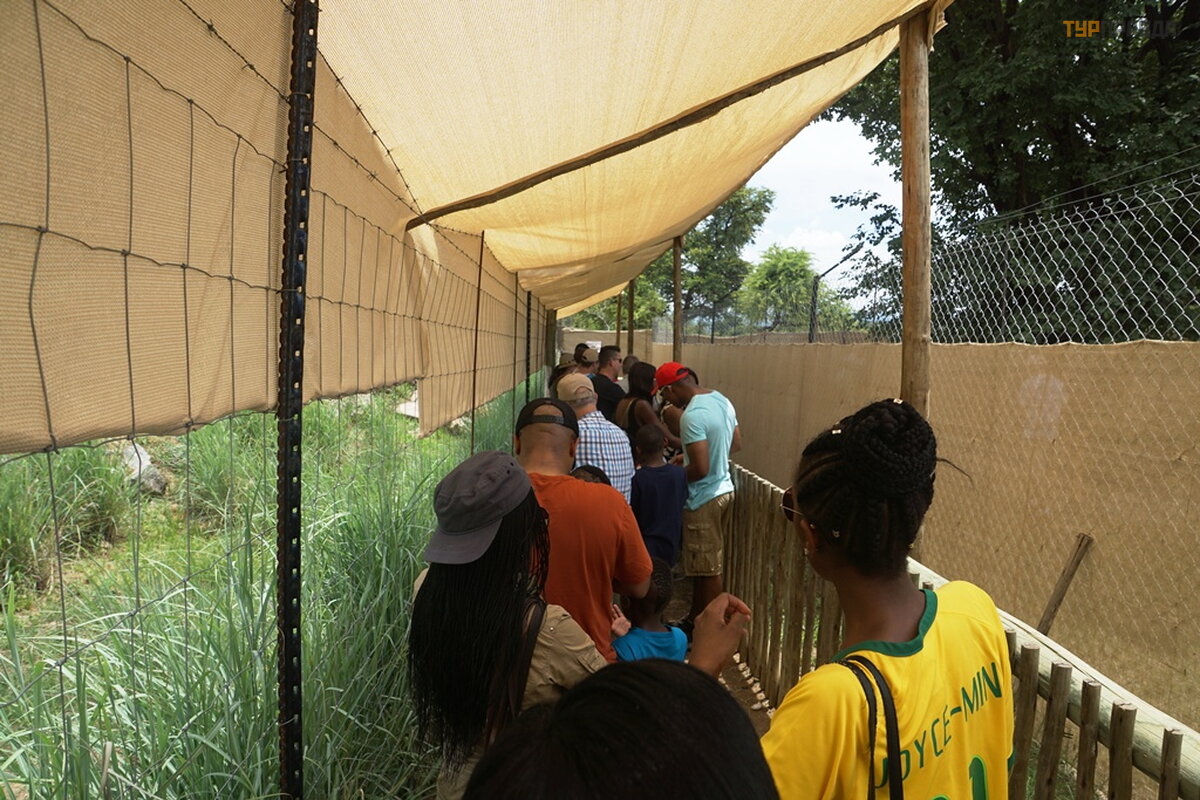 Upał był po prostu nie do zniesienia + 45 najwyraź niej przed ulewą . Kupił em bilet uniwersalny do parku za 260 ZAR. Za te pienią dze mogł em pobawić się z mł odymi i przejechać przez Park Lwó w, gdzie zwierzę ta są wolne. W upale stał w kolejce do mł odych. Bawił em się nimi wystarczają co ze zdję ciem i został em poproszony o ich opuszczenie, ponieważ w kolejce jest wiele osó b.