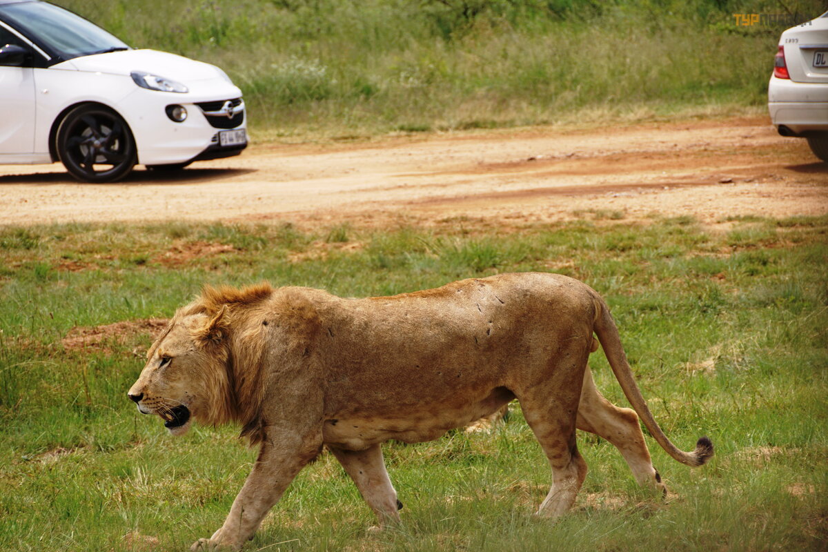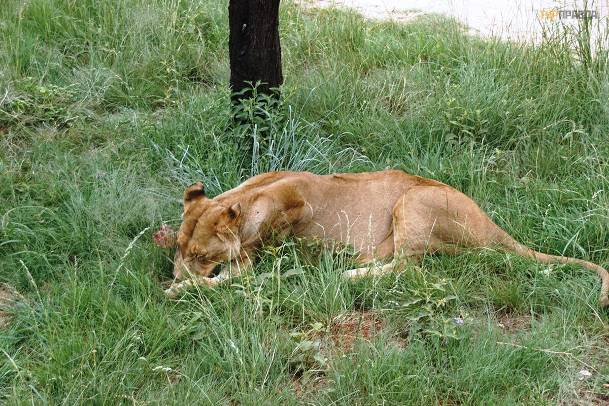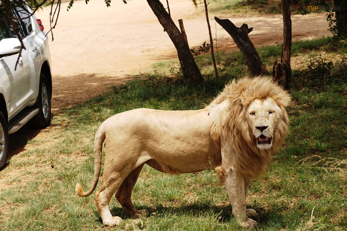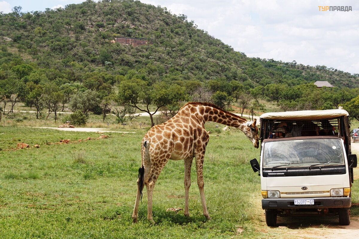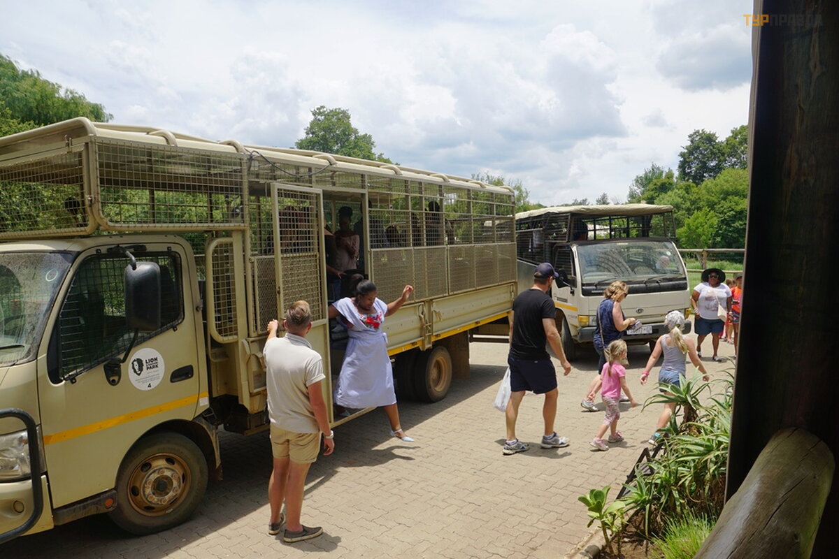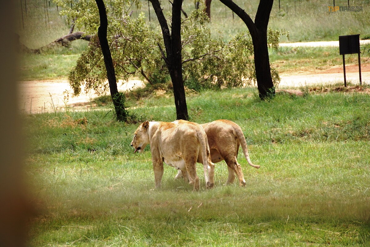 Далее подъехало пять машин с клетками, на которых удобнее заключённых возить, мы двинулись по обширному парку. В моей машине была гид девушка, она же водитель, непонятной национальности. Огненный окрас, причёска, видимо, местных аборигенов, живших лет двести назад. Рассказала о том, что можно, и что нельзя. Нельзя давать львам колбасу, бюргеры, а то они перестанут охотиться и есть сырое мясо. Нельзя подзывать хищников, и трогать их клыки, на предмет того, что настоящие они или нет. Мандарины и бананы львы не едят. Можно только фотографировать через крошечные окошки. Ездили мы более двух часов. Видели разных зверей. Конечно, хотелось бы полежать в тени под деревом рядом со львом, и потрепать его за гриву, но нельзя. Говорят, что он может укусить. А так, как медицина в ЮАР очень дорогая для туристов, то у меня такое желание сразу пропало. Не хотелось бы расспросов страховщиков о том, мол, зачем приставал ко льву? На это страховой случай не распространяется.