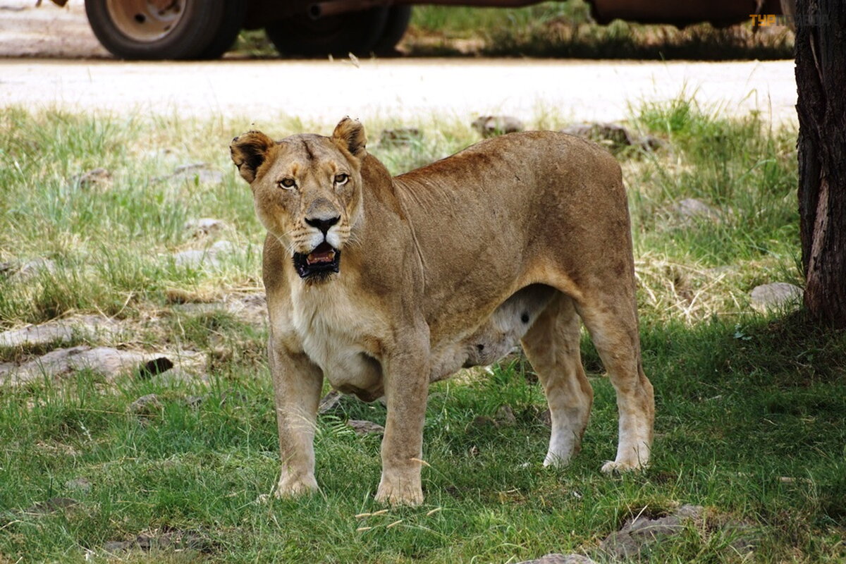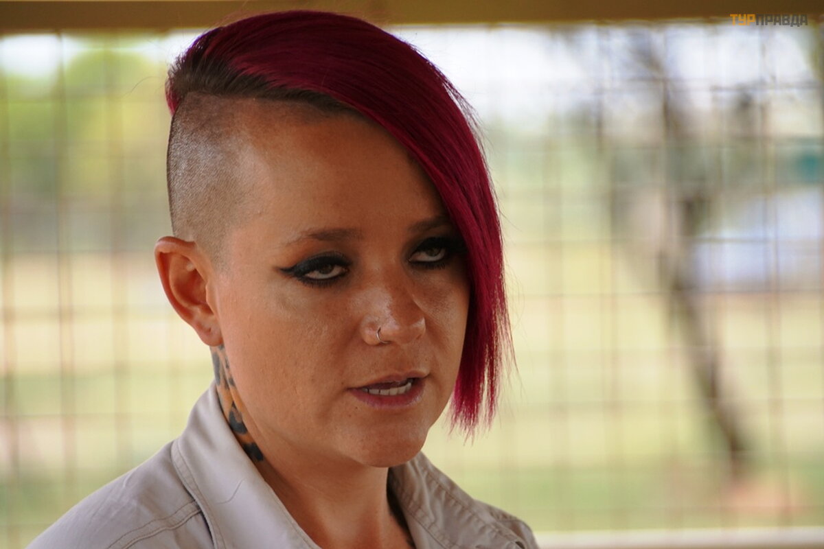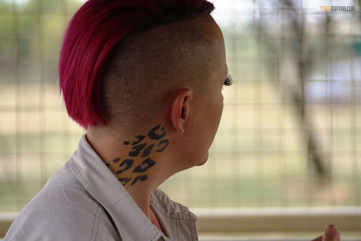 Наша гид-водитель. Крутая девушка. Львы её приняли за свою по причесону.