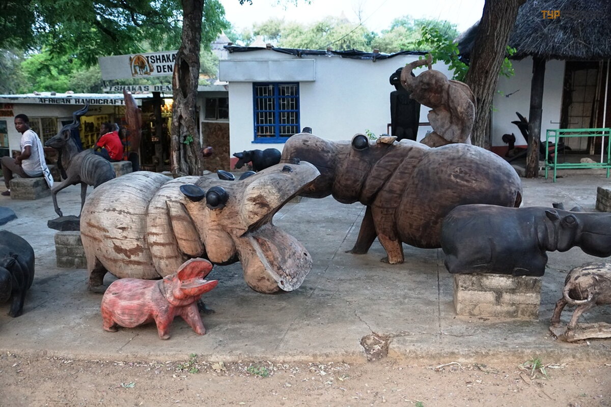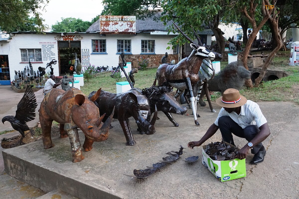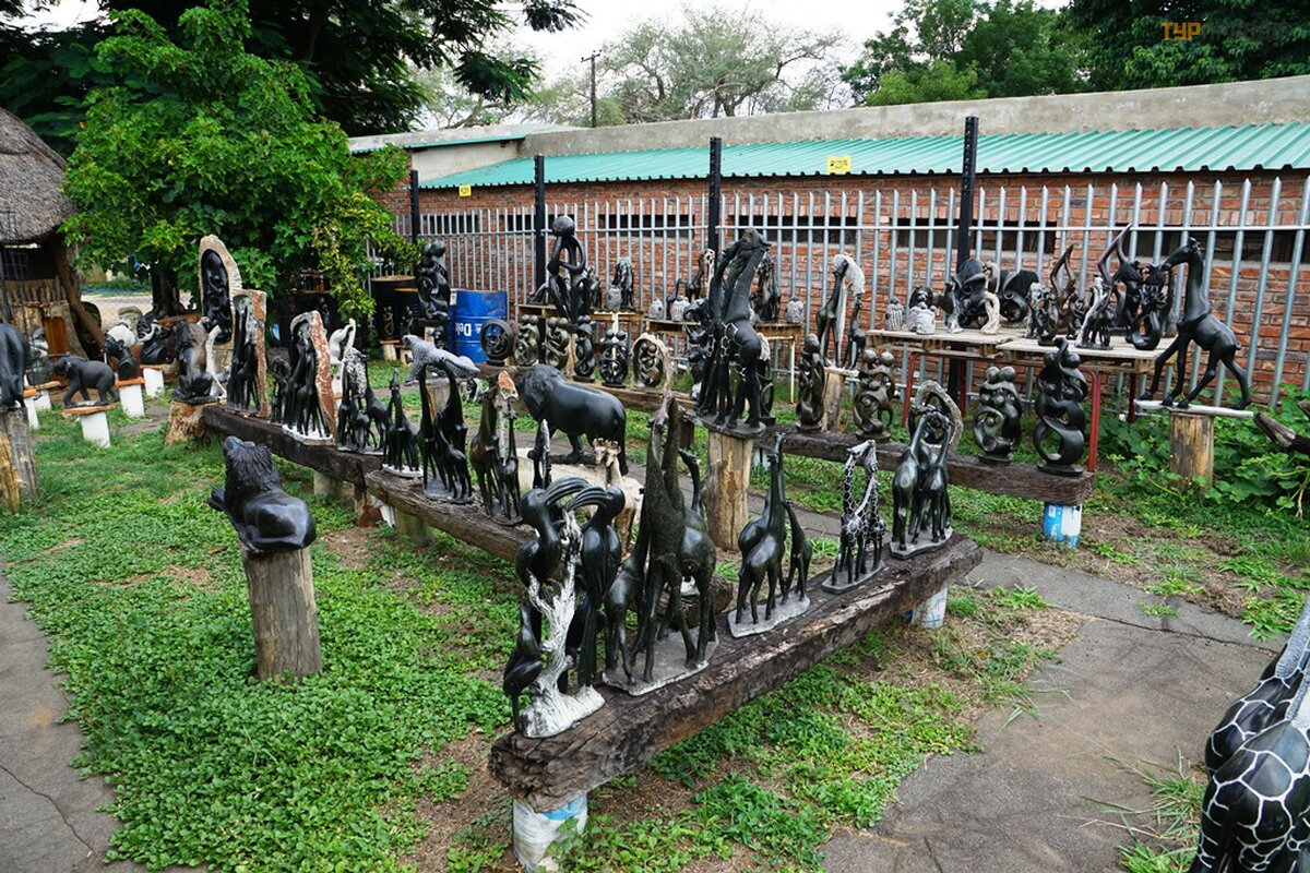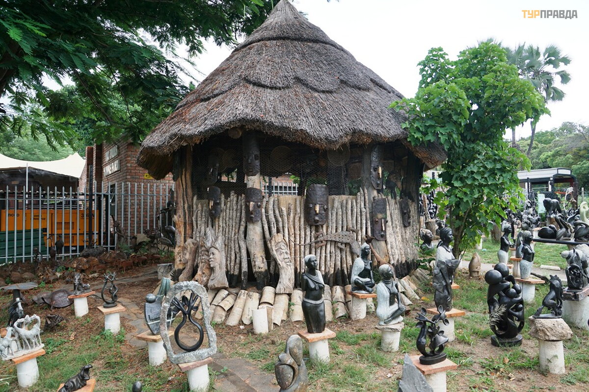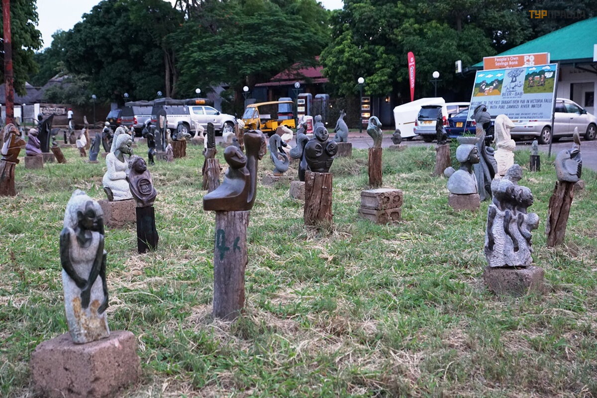 Miasto Wodospadó w Wiktorii został o zbudowane i jest budowane jakoś chaotycznie. Kto chce tego, czego chce, buduje, jak chce, jeś li miejscowy wó dz dostanie pienią dze. Był em zdumiony masową produkcją ró ż nych figurek ze wszystkiego, co moż na znaleź ć . Niektó re rzeź by zachwycają jego artystę , ponieważ są wykonywane przez prostych, mocno opalonych mieszkań có w, któ rzy stali się mistrzami w swoim rzemioś le. Podobno rzeź b w tym mieś cie jest wię cej niż w cał ej Afryce.