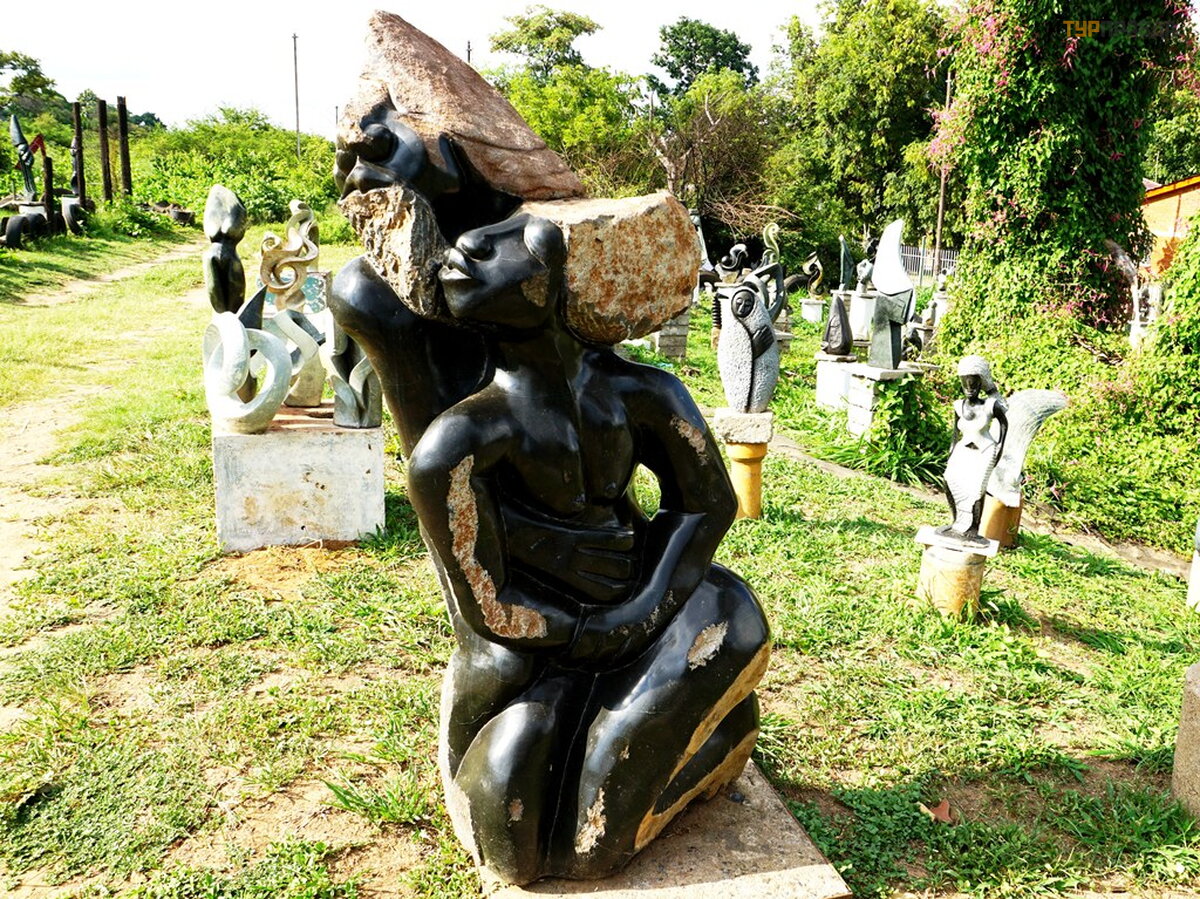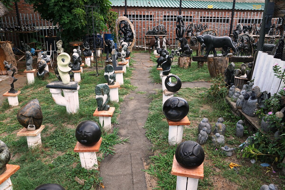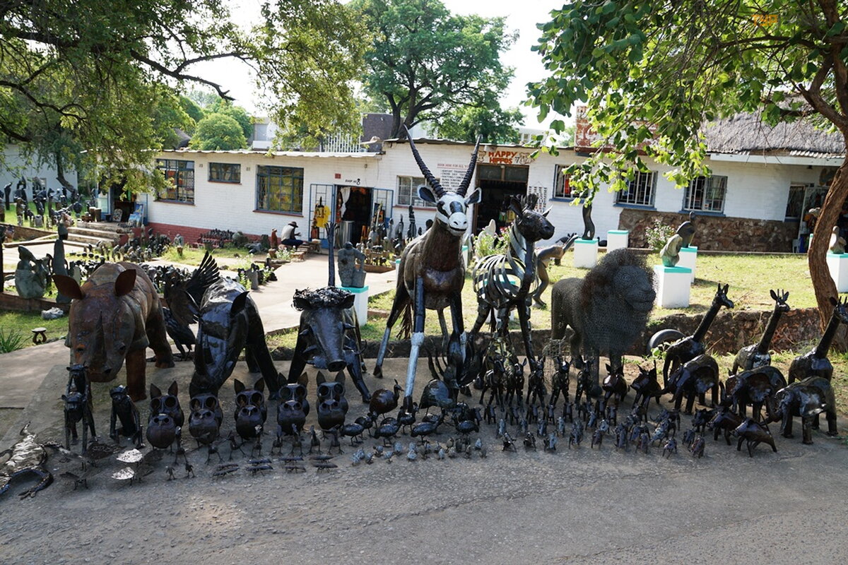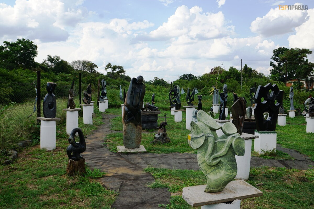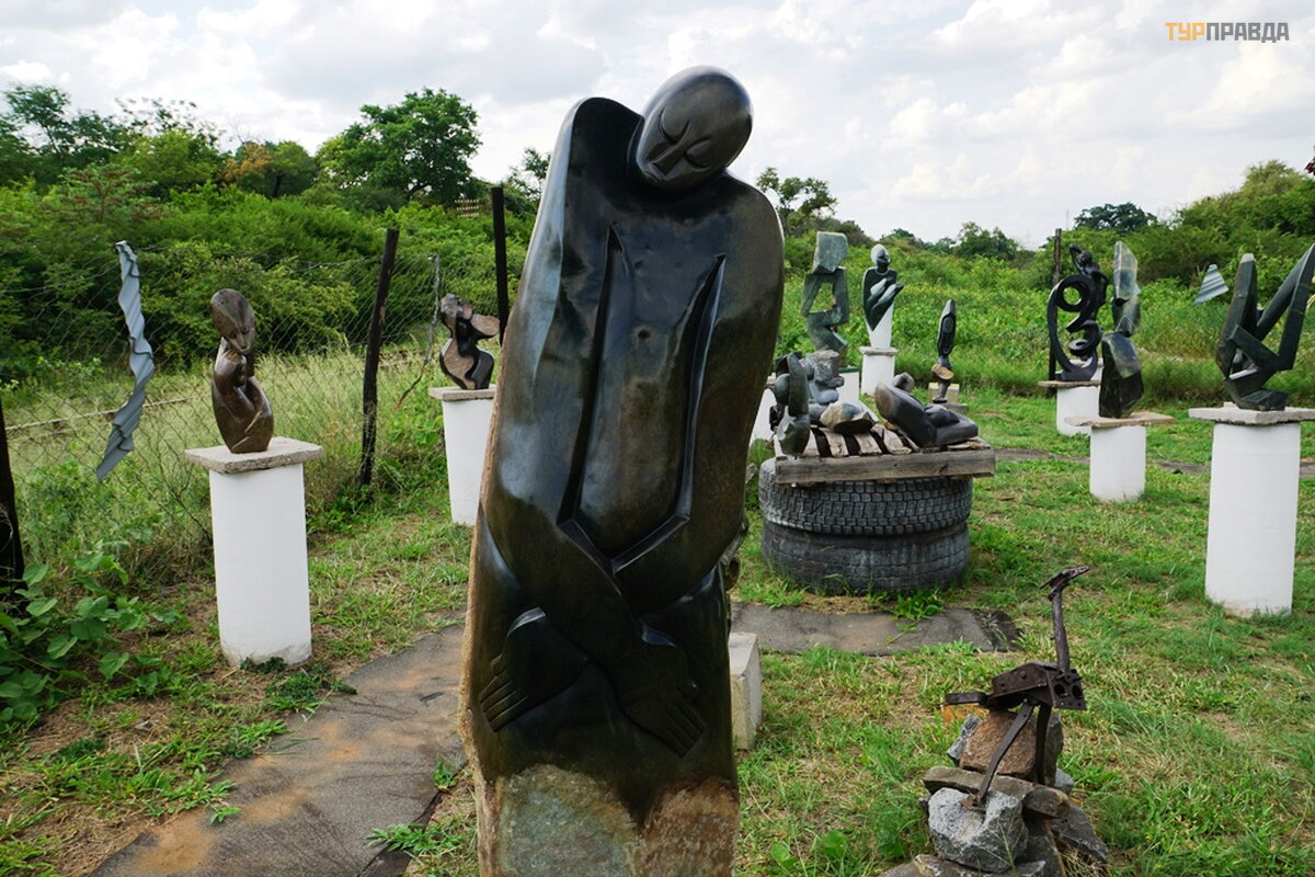 Miasto Wodospadó w Wiktorii został o zbudowane i jest budowane jakoś chaotycznie. Kto chce tego, czego chce, buduje, jak chce, jeś li miejscowy wó dz dostanie pienią dze. Był em zdumiony masową produkcją ró ż nych figurek ze wszystkiego, co moż na znaleź ć . Niektó re rzeź by zachwycają jego artystę , ponieważ są wykonywane przez prostych, mocno opalonych mieszkań có w, któ rzy stali się mistrzami w swoim rzemioś le. Podobno rzeź b w tym mieś cie jest wię cej niż w cał ej Afryce.